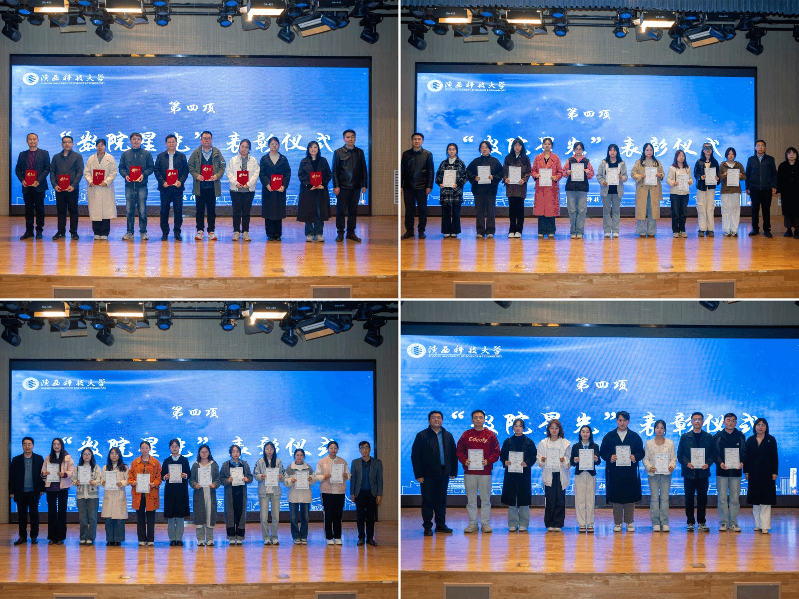 3月18日,数学学院举办第三届“数院星光”颁奖典礼。教务处、学工部、校团委等相关单位负责人、数学学院班子成员及师生代表出席活动。会上,对数学学院2024年度先进工作者、优秀指导教师、学习之星、科创之星、实践之星等先进师生代表进行了表彰。