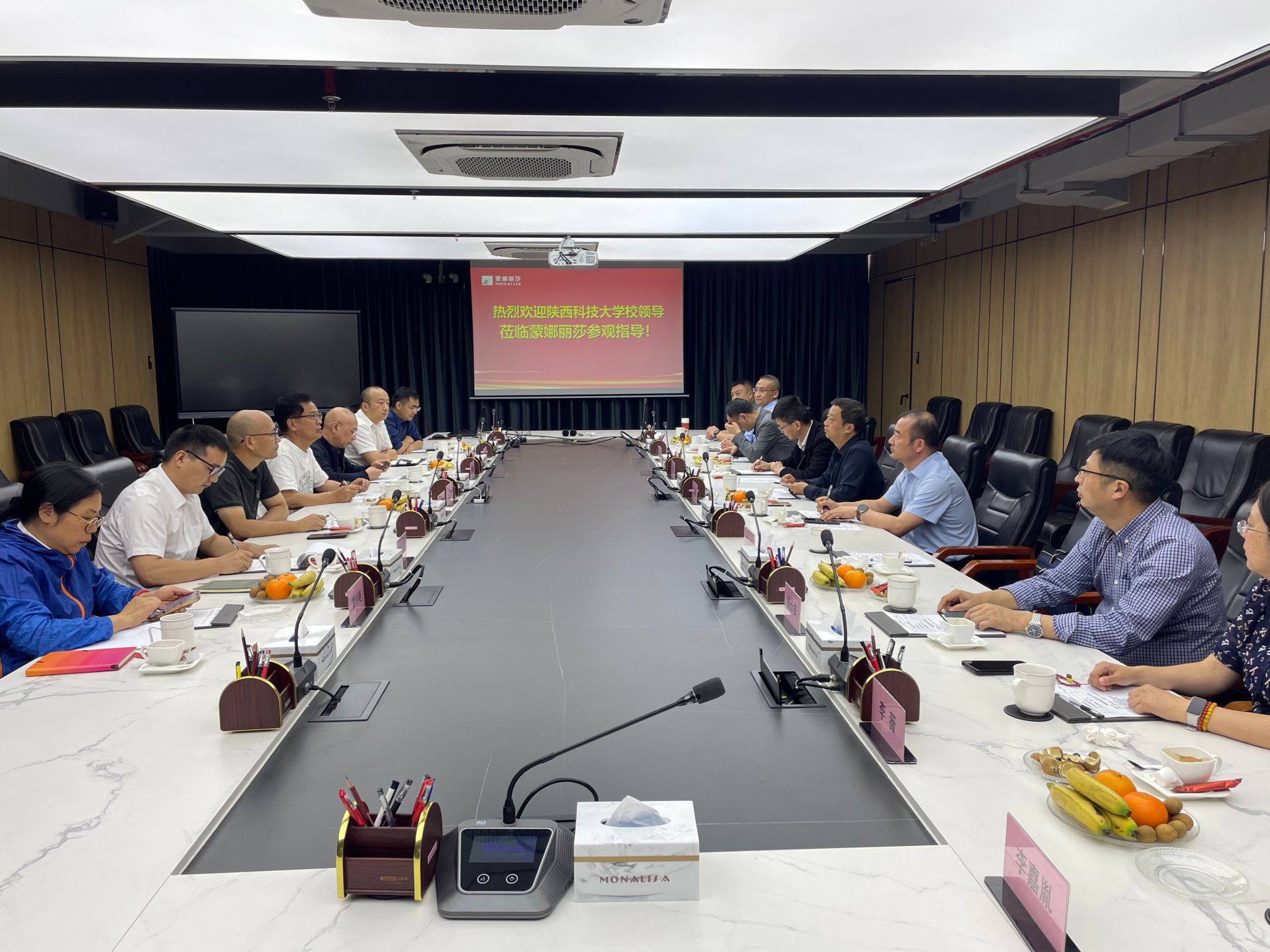 走访期间,黄剑锋与东莞市茅园贸易有限公司董事长邓郁猛(食品88)、珠海旭日陶瓷有限公司总经理宁红军(硅87)、中国水发兴业能源集团有限公司珠海兴业绿色建筑科技有限公司董事长杨大军、佛山市蒙娜丽莎集团股份有限公司董事、董事会秘书张旗康等围绕校企合作、人才培养、毕业生招聘等举行座谈、开展交流,参观珠海市白兔瓷砖全球运营中心和世界马赛克艺术馆,蒙娜丽莎研究院、氨氢零碳示范车间等地。