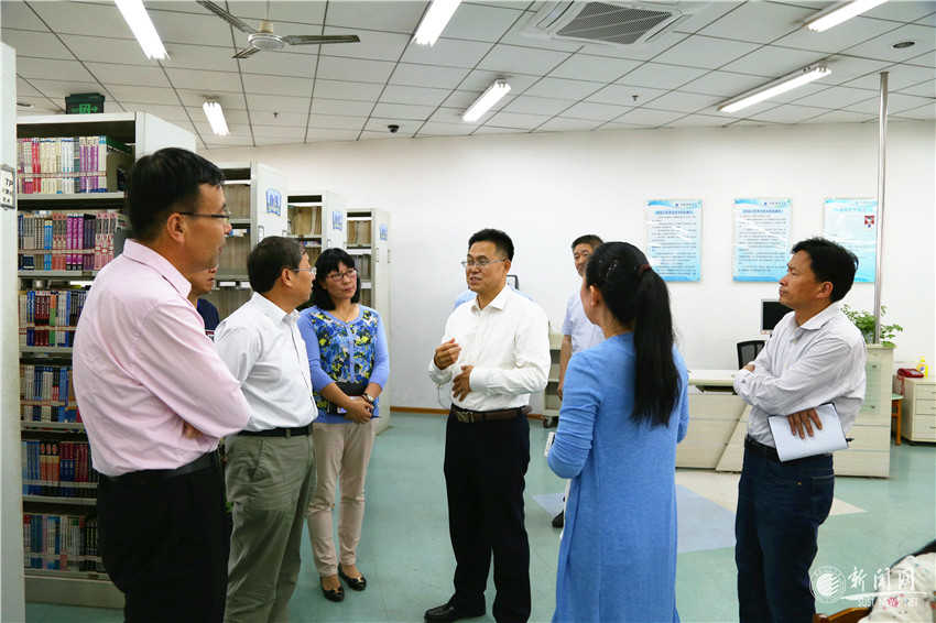 马建中一行察看了教育部科技查新工作站、电子阅览室、科技图书阅览室、档案馆文献库,详细了解相关服务工作开展情况。