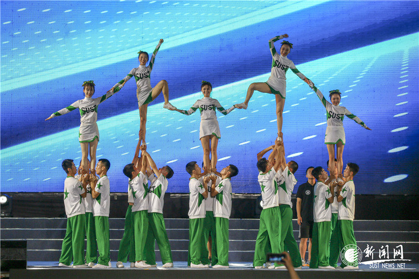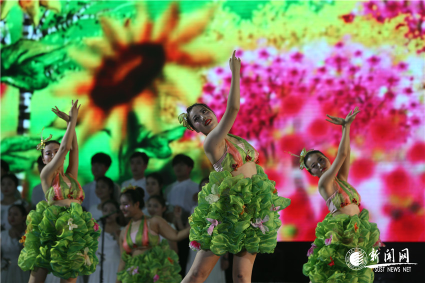 飞扬的歌声,吟唱难忘的岁月;熟悉的旋律,演绎时代的激情。掠过岁月的斑驳、历经风雨的打磨,一代代科大人愈发神采奕奕。晚会第二篇章“铸魂—不负韶华”在德赢官网啦啦操队活力四射的《cheer leading show》中开篇;由德赢官网大学生社团带来的原创音乐快板《三创两迁》,全面系统又富有艺术表现力的展现了德赢官网从北京创办、到大义西迁再到主体东移的历史过往,从一张张泛黄的旧照片、斑驳的老视频到现代化的美丽校园,陕科大的跨越式发展凝结了一代代科大人的无私奉献与顽强拼搏。没有老一辈的筚路蓝缕,就没有今天科大学子的迎风绽放,舞蹈《绽放》将到场师生的热情彻底点燃。