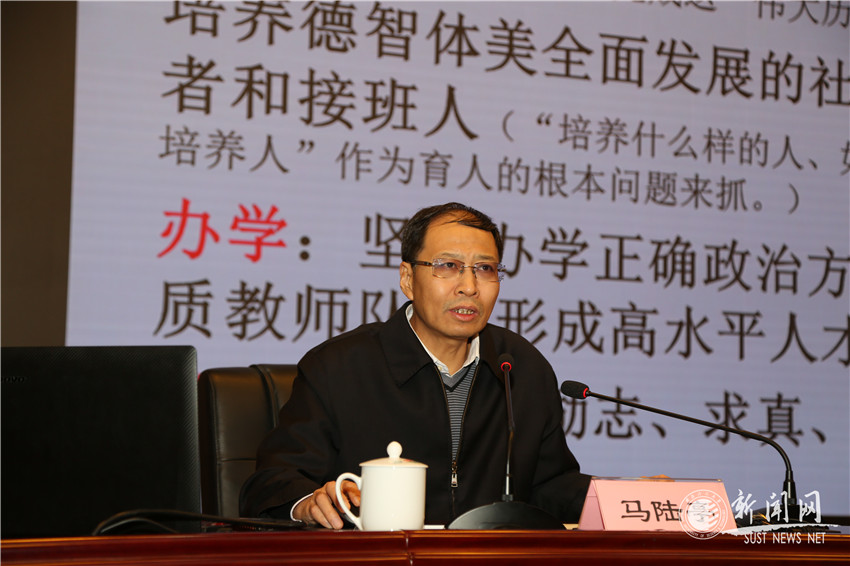 马陆亭研究员以《贯彻落实全国教育大会精神 推动建设一流本科教育》为题,从高等教育的时代责任、育人内涵的加强、扎根中国大地办大学、本科教学的结构化育人等四个方面,做了一场深化学习全国教育大会精神的辅导报告。
