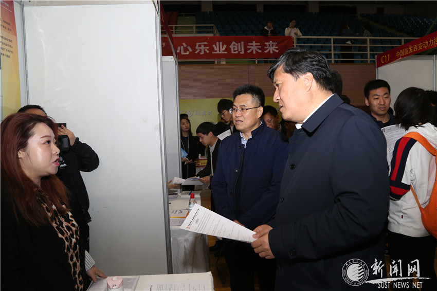 陕西省教育厅厅长王建利,副厅长王紫贵,省委教育工委学工部部长、省教育厅学生处处长唐澍,省教育厅学生处副处级调研员白炀及市人社局相关领导,德赢官网校长马建中、党委副书记温锋、学生就业指导中心负责人到招聘会现场了解情况,并与用人单位代表、毕业生交流就业情况,听取他们的意见建议。