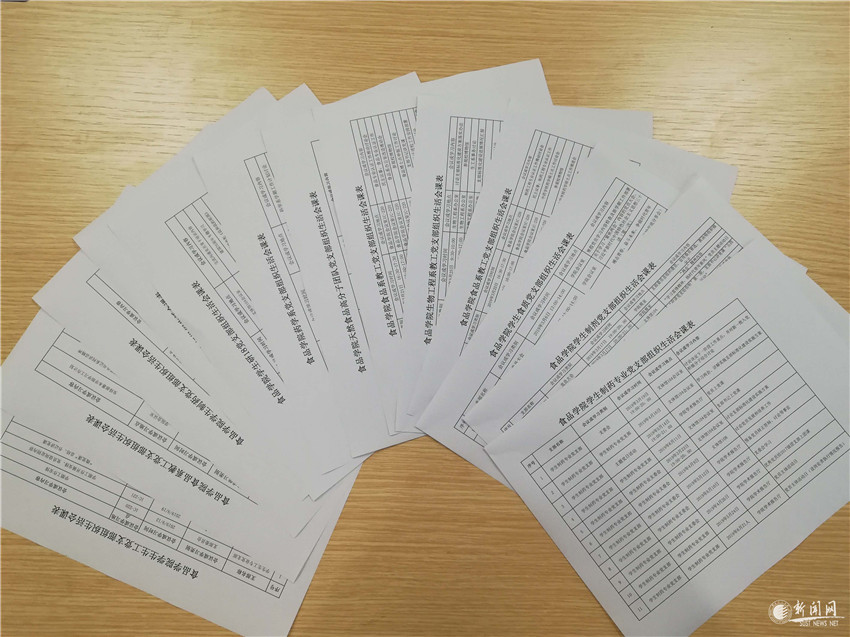 组织生活安排课表化。“食品系教工党支部—9月25日—学院会议室—学习习近平总书记系列讲话精神;食品学院研究生食品党支部—10月11日—观影《我和我的祖国》.......”一张张定制化的组织生活安排课表把食品学院11个教工、学生党支部下半年的组织生活安排地清晰明确。这张课表由学院党委指定,支部自选,明确学习内容、固定学习时间、细化学习要求。有了这张“课表”,党支部书记提前“备课”,支部党员提前“预习”,党委书记随时“查课”,学习效果就有了保证。