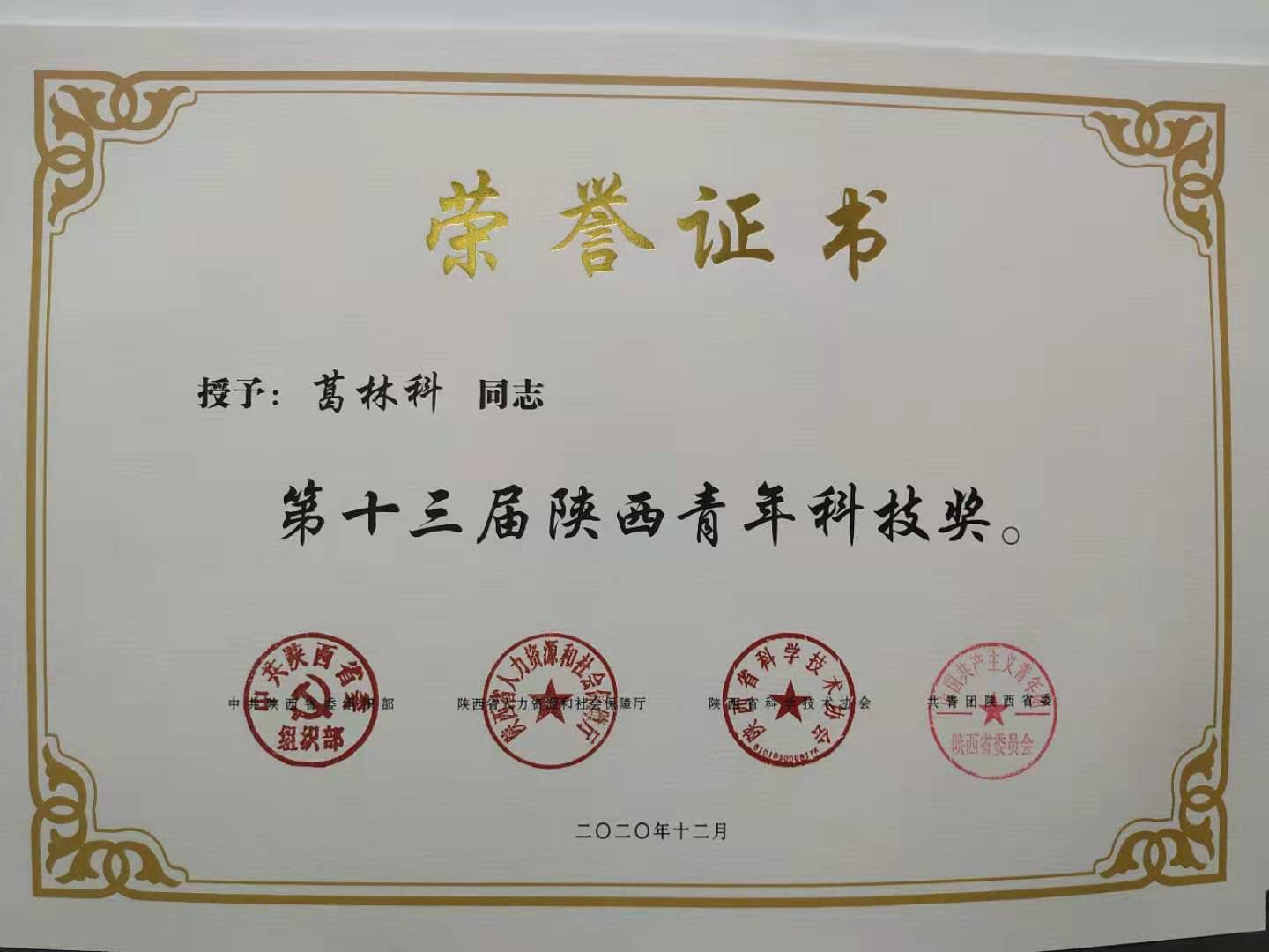 近日,中共陕西省委组织部、陕西省人力资源和社会保障厅、陕西省科学技术协会和共青团陕西省委联合下发了《关于表彰第十三届陕西青年科技奖获奖人员的决定》(陕科协发〔2020〕组字17号),表彰了100位陕西青年科技奖获得者,德赢官网环境学院葛林科教授获得此项殊荣。