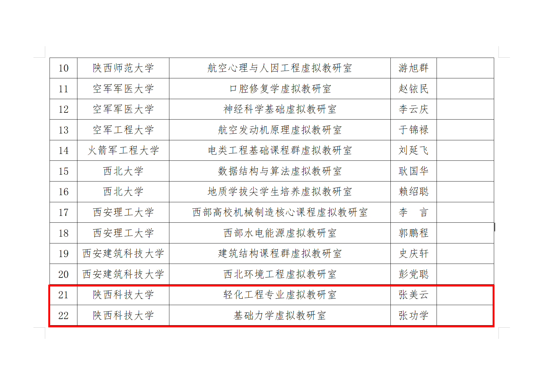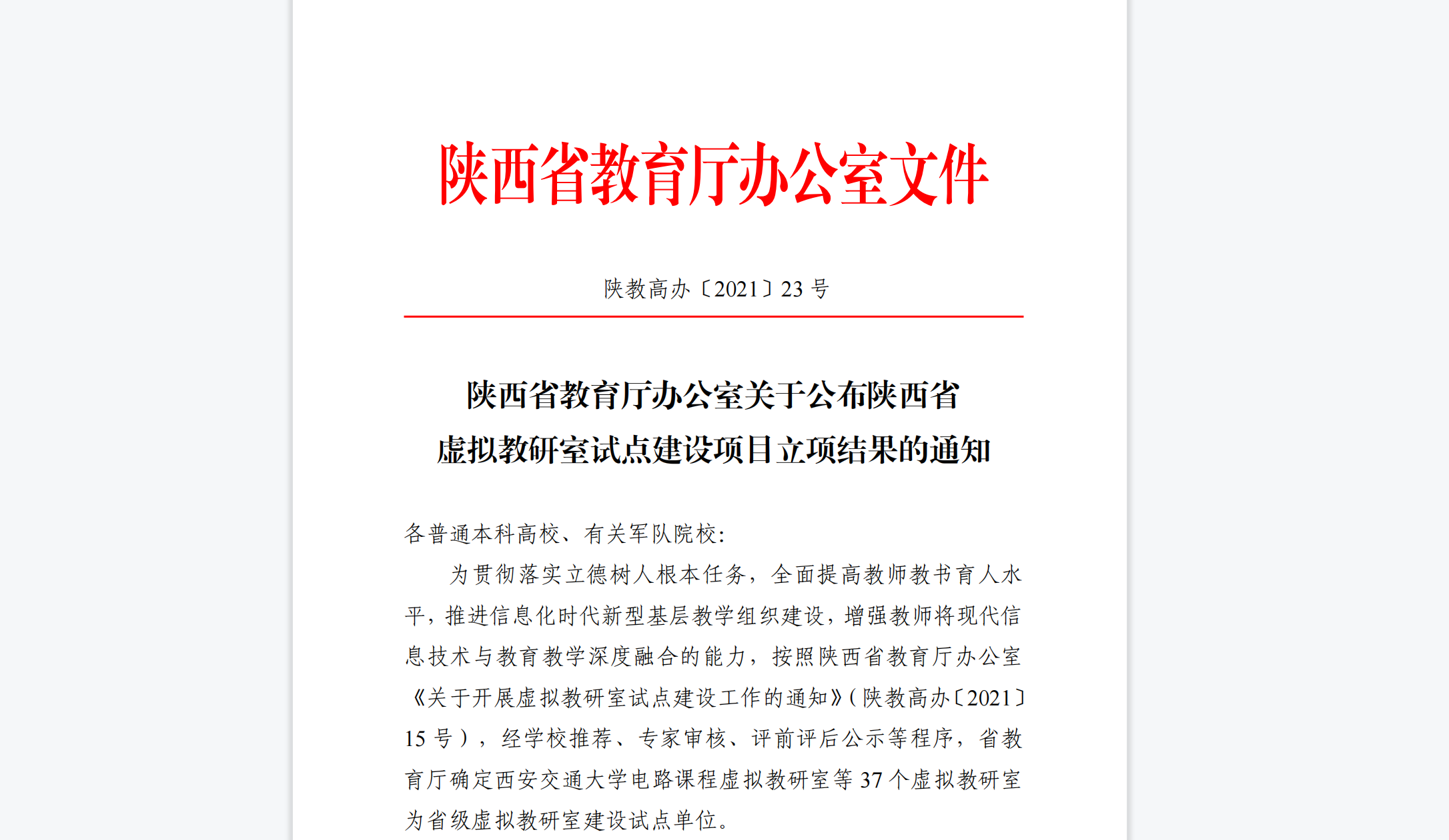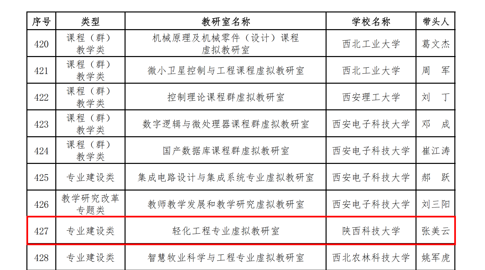 前期,陕西省教育厅开展省级虚拟教研室评选工作,共立项虚拟教研室建设试点37个,涉及26所高校,其中德赢官网轻工学院张美云教授作为带头人的“轻化工程专业虚拟教研室”和机电学院张功学教授作为带头人的“基础力学虚拟教研室”获批省级立项。