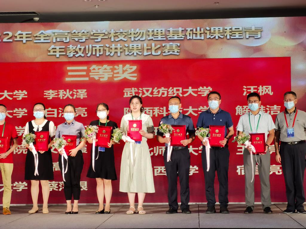 8月6日,由中国物理学会物理教学委员会、教育部高等学校大学物理课程教学指导委员会主办,东北师范大学承办的 “2022年全国高等学校物理基础课程(实验)青年教师讲课比赛”在长春举行,德赢官网青年教师解雅洁获得三等奖,这也是德赢官网教师首次进入该项讲课比赛的全国决赛。