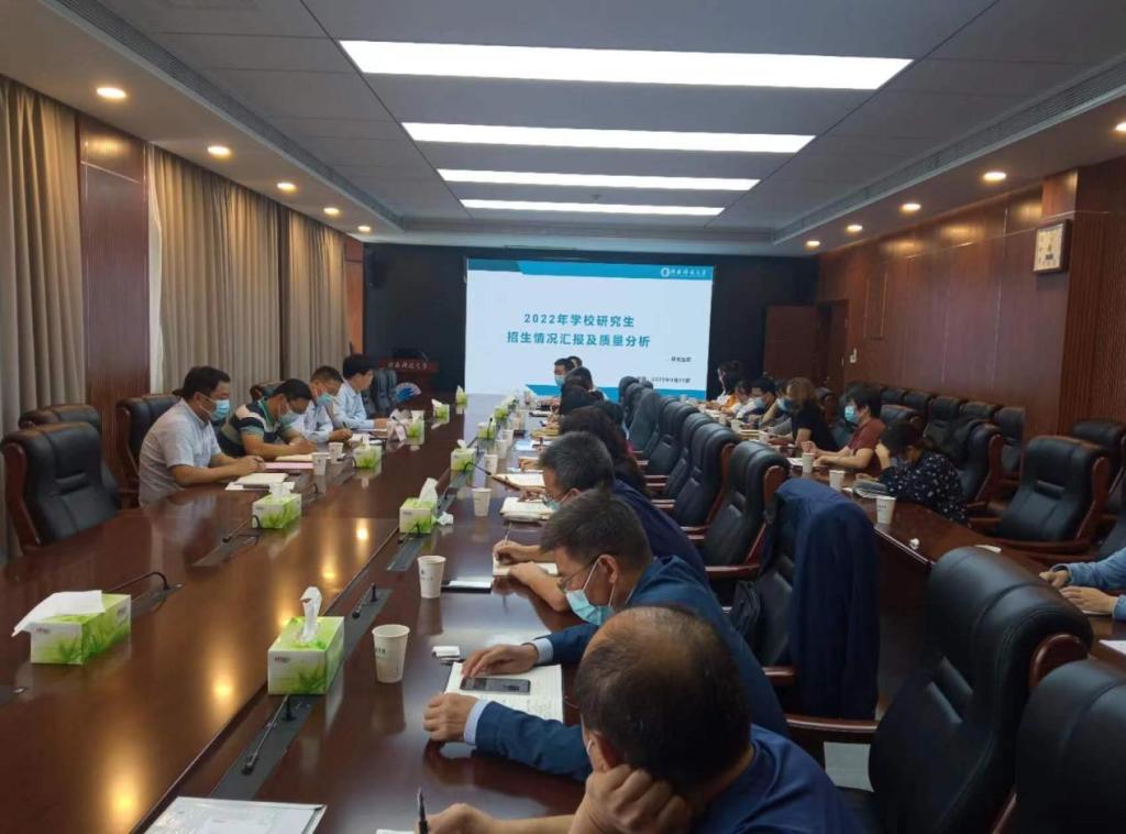 研究生招生办主任李成龙从报考总体情况、生源质量分析、招生工作举措、招生总体目标四个方面,对2022年学校研究生招生情况及质量分析作了汇报。