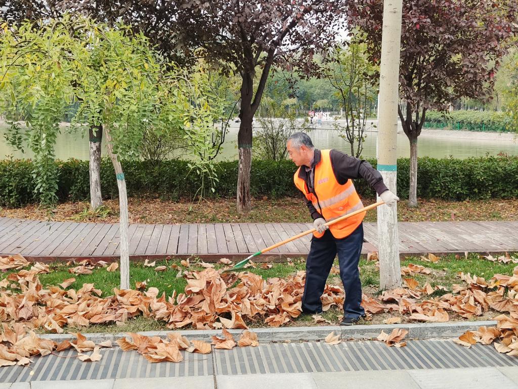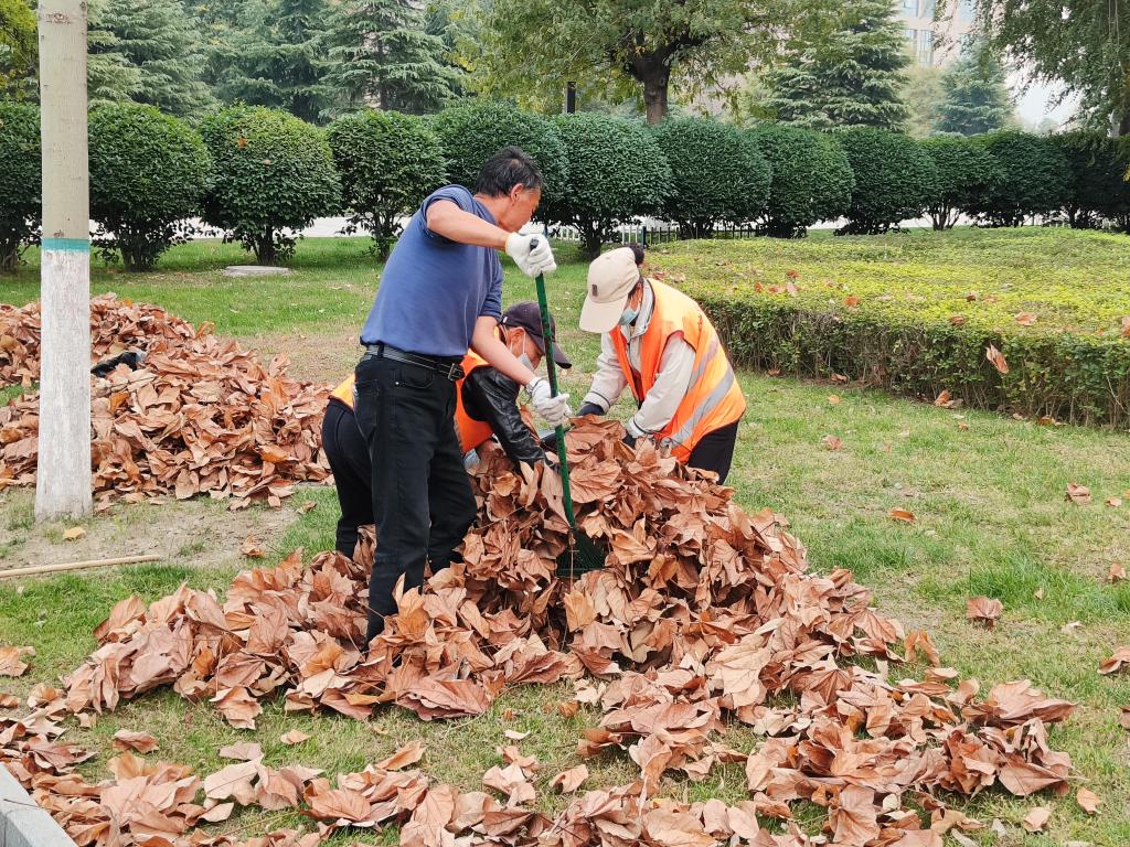 深秋时节的校园落叶纷纷,张东京、贾得才、梁仁贵、张国祥、冯淑芳、刘亚利、余西庆、郑巧红7人每天早上6点起床,做完核酸后就开始清扫落叶,沿着教学区环道一圈上万平方米的景观道路,他们每天要用脚步和笤帚丈量一遍,回收起来的落叶要装满好几辆三轮车。每天晚上回到临时住宿点,他们累得倒头就睡,被问起工作是否辛苦的时候,他们露出淳朴的笑容:“那咱就干着人家这个活嘛!”