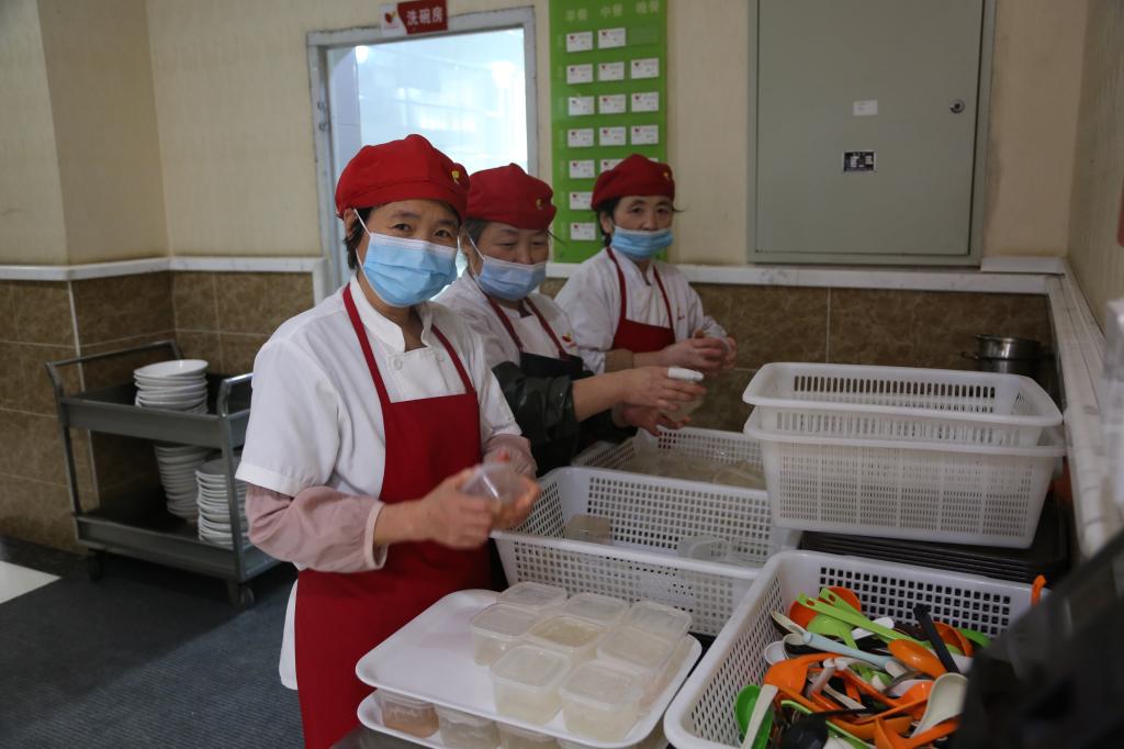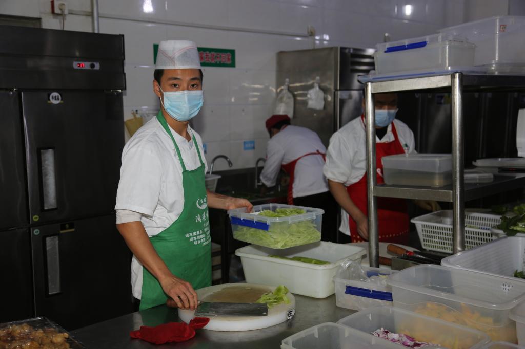 校饮食服务中心副主任梁本立说:“咱陕科大食堂是国家八部委颁发的‘食品安全示范单位’,是‘省级学雷锋活动示范点’,我们要好好干,让娃们在学校吃得好,才对得起这些荣誉!咱们各食堂总共有600多名炊事员,大家起早贪黑干了快一个月了,还没有一个人脱离岗位!”
