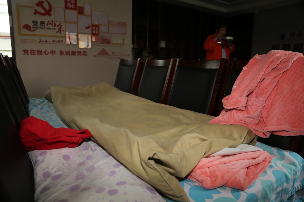 10月11日晚,接到后勤集团的通知后,46名保洁人员匆匆安顿好家人,带着被褥紧急返回校园,承担起平时需要180人才能完成的保洁任务。