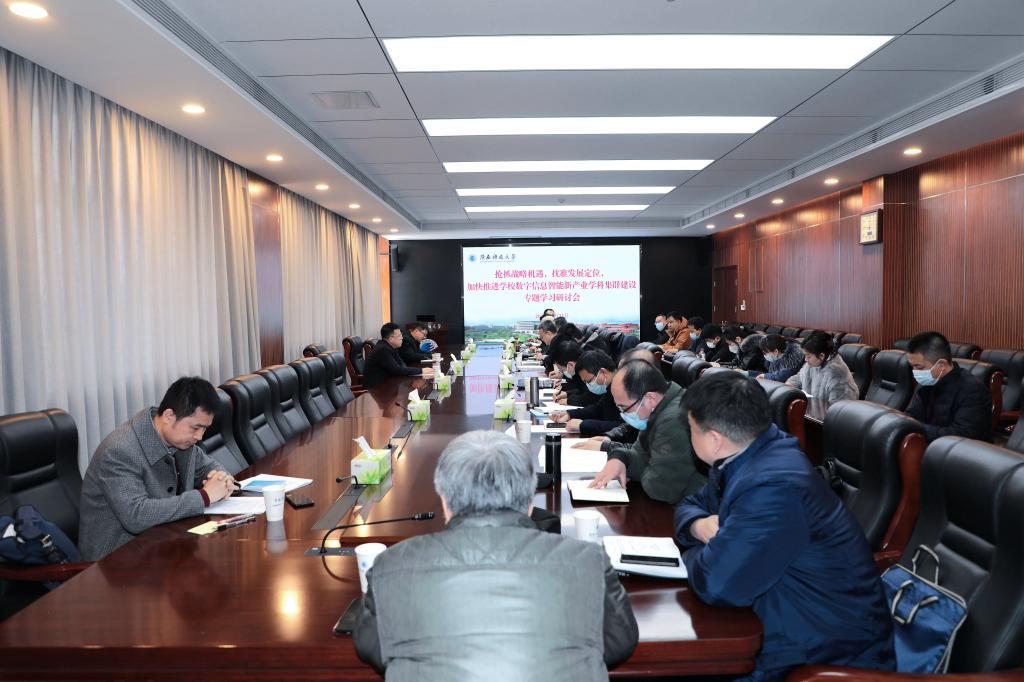 2月22日上午,“抢抓发展机遇,找准发展定位,加快推进数字信息智能新产业学科集群建设”专题学习研讨会在逸夫楼506会议室召开,校党委副书记郭强出席并主持会议。电气与控制工程学院、电子信息与人工智能学院、数学与数据科学学院、经济与管理学院、设计与艺术学院(丝路文化与传播学院)、环境科学与工程学院院长和分管学科科研的副院长,以及发展规划处、学科办、科技处、前沿院、网络中心、校友会等职能部门有关负责同志参加会议。