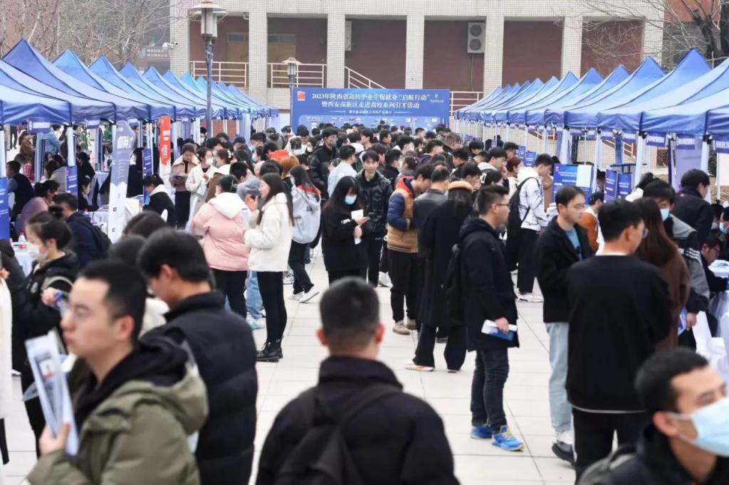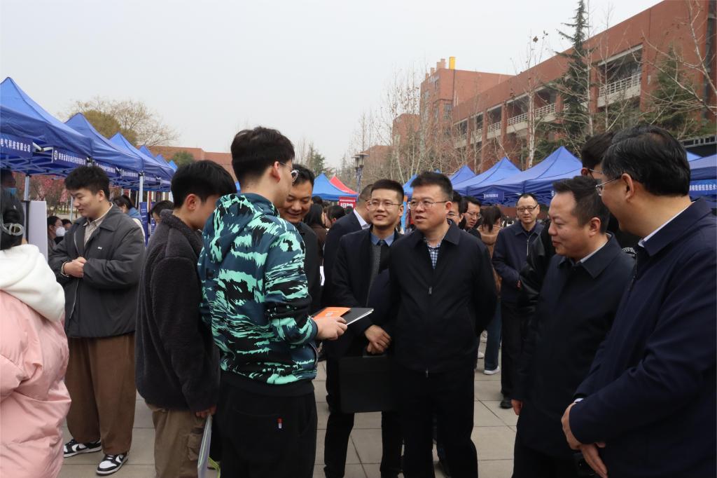座谈会后,全体人员赴招聘会现场了解情况。据悉,本次招聘会与高新区众多优质企业资源进行对接,组织高新区内华陆科技、奕斯伟、爱生无人机技术、西电国际、增材制造国家研究院、恩梯梯数据、中航工业等近80家知名企业开展校园招聘活动,涵盖软件工程、信息安全、计算机科学与技术、新能源、新材料、市场营销、行政管理等岗位900余个,参会人数1206人,初步达成就业意向834人次。招聘会还同时启动线上模式,现场有“校园主播”进行空中宣讲、企业推介、直播带岗等环节,当日浏览量逾3万。