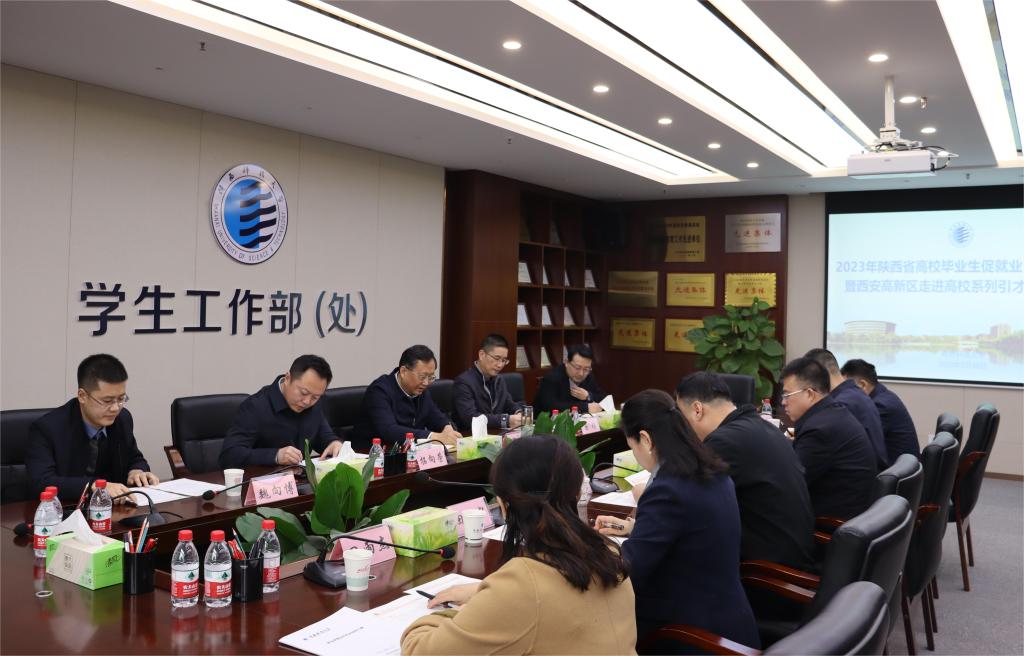 就业是最基本的民生。为进一步精准搭建高校、企业、人才对接平台,2月28日,由陕西省教育厅和西安高新区主办、德赢官网Vwin承办的2023年陕西省高校毕业生促就业“启航行动”暨西安高新区走进高校系列引才活动在德赢官网正式启动。陕西省委教育工委、省教育厅二级巡视员高巍出席并讲话,高校学生工作部(处)及高新区组织人事部常务副部长、人才办主任拓向荣一行来校参加活动,校党委副书记郭强出席,德赢官网学工部、前沿院、电气与控制工程学院、经济与管理学院相关负责人参加座谈。