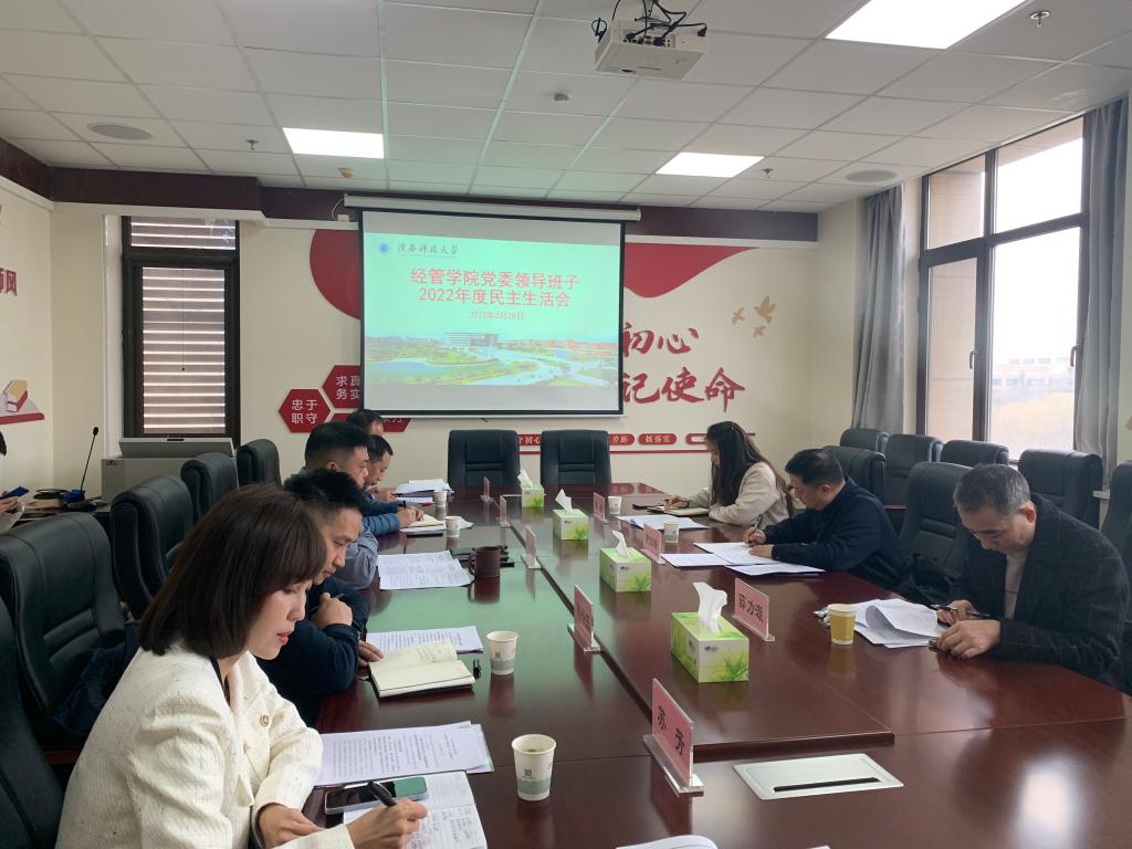 按照《2022年度组织生活会和民主评议党员工作实施方案》相关精神和要求,经济与管理学院党委领导班子在扎实开展会前集中学习、广泛征求全院师生意见、认真开展谈心谈话的基础上,于2月28日15点在人文楼A415会议室召开2022年度民主生活会。校党委委员、副校长黄剑锋出席会议并做指导讲话,校第一指导组成员列席会议。学院党委领导班子成员、党委委员和师生党支部书记代表、组织员参加会议。会议由院党委书记崔楠主持。