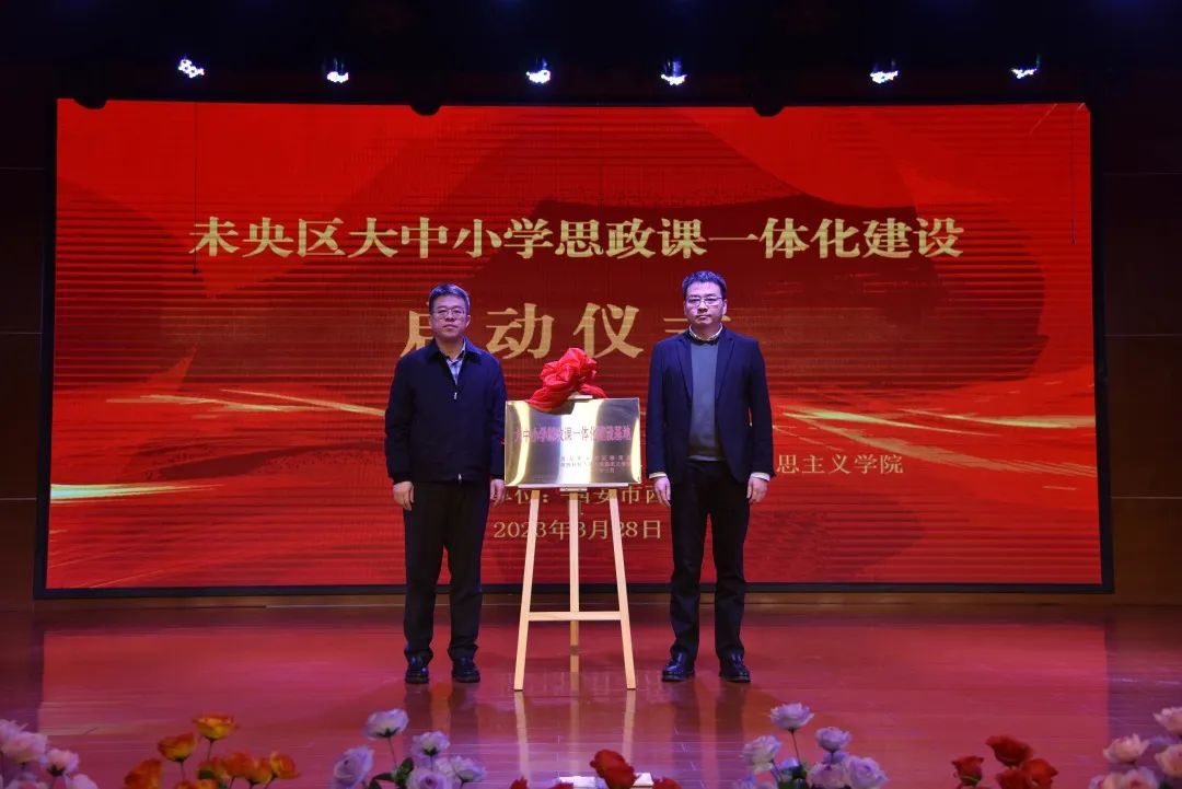 3月28日下午,未央区大中小学思政课一体化建设启动仪式在西航一中举行,德赢官网“陕西大中小学思政教育一体化建设路径研究”项目负责人、校党委副书记郭强和未央区政府副区长王健应邀出席启动仪式并为基地揭牌。未央区教育局党委书记、局长李建新致辞。仪式由未央区教育局党委副书记高小峰主持。