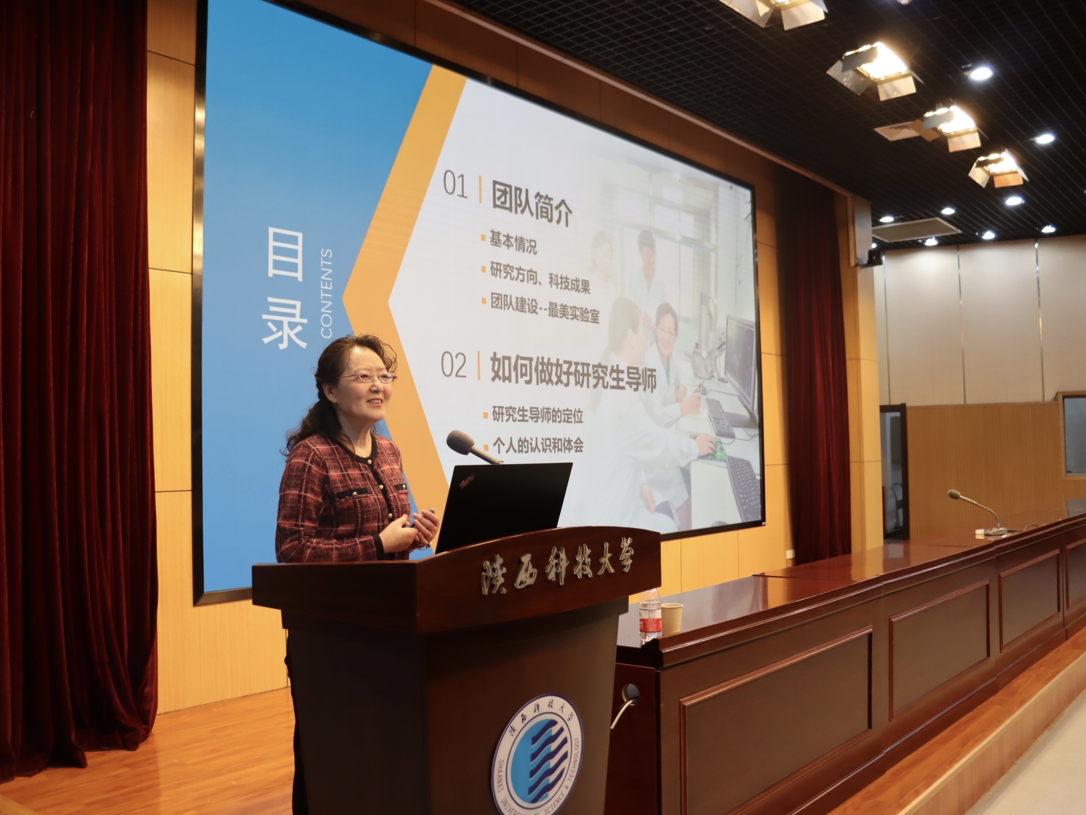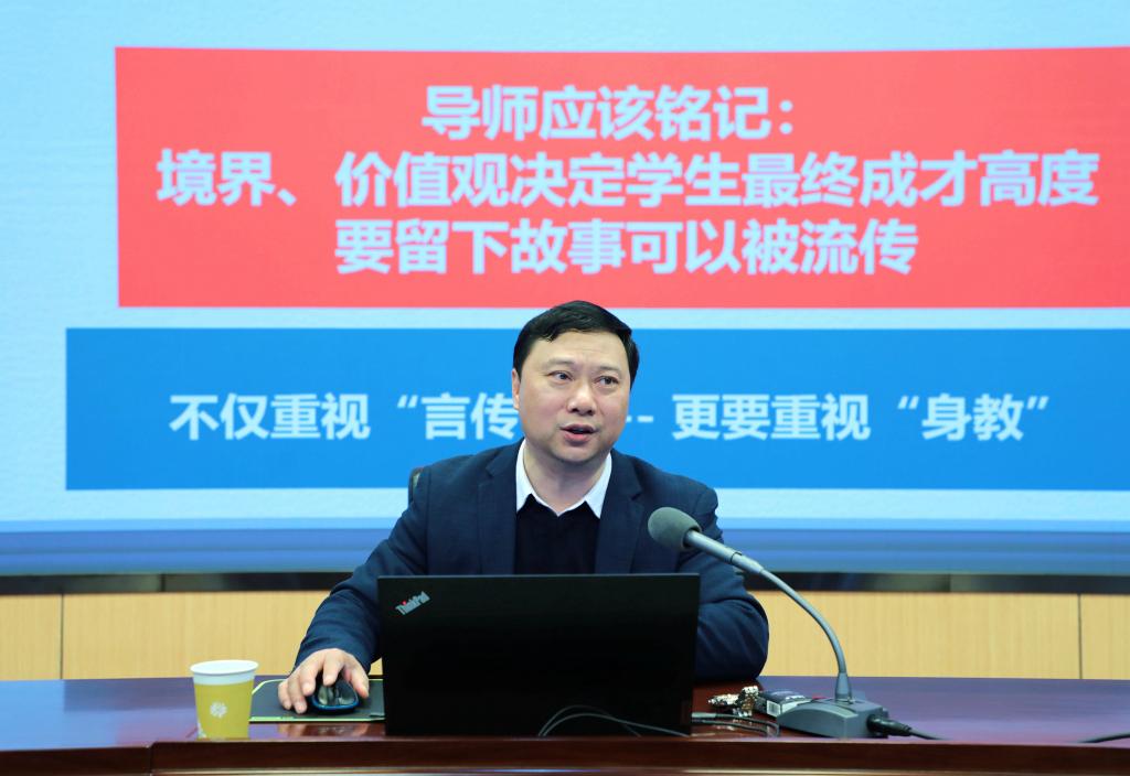 4月14日上午,陆赵情作了题为《立德树人,导学相融——新时代如何成为一名合格的研究生导师》的报告。报告从学校三步走发展战略及研究生十四五事业发展规划的背景出发,通过生动典型的案例及自己指导研究生的相关经验,从准确的角色定位、良好的导学关系、提升自身指导水平及以身作则立榜样四个方面与大家共同交流了新时代如何成为一名合格的研究生导师。