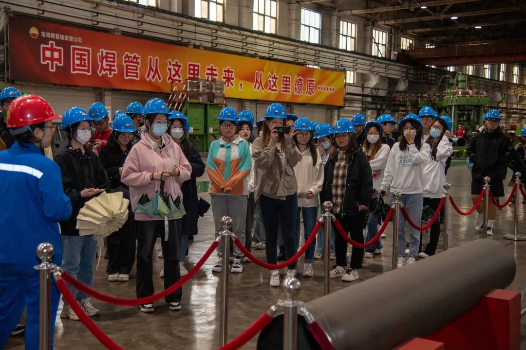 学生代表们一行先后参观了宝鸡长乐塬抗战工业遗址、宝鸡石油钢管有限责任公司、宝鸡市青铜器博物院并参加座谈会。在长乐塬抗战工业遗址,学生们先后参观了申新纱厂办公楼和窑洞工厂,了解“一起干,努力干”的工合精神和宝鸡现代工业的发源和发展脉络。在宝鸡石油钢管有限责任公司,学生们集体参观了企业展厅、国家油气管材工程技术中心实验室及生产车间,了解企业生产经营、科技研发、青工职业发展、技能提升、企业文化建设等情况。座谈会上,学生们倾听了关于宝鸡青年发展型城市建设情况、企业青年人才引进政策,并与一线最美青工座谈交流,进一步增进了毕业生们对宝鸡城市建设发展的了解,对返回家乡就业的热情。