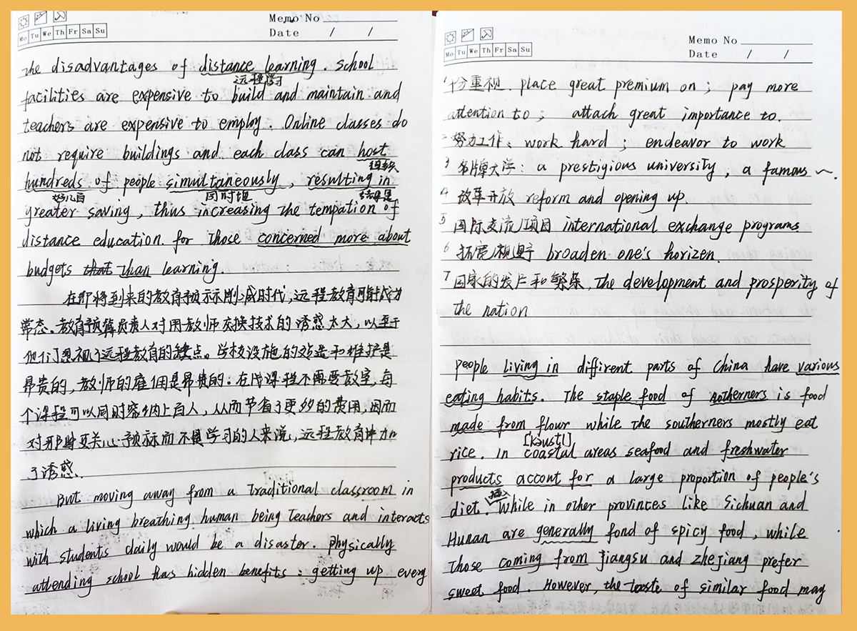 大学一年级时,他就顺利通过了大学英语四级考试,大二顺利通过大学英语六级考试。大一学年荣获学业奖学金。