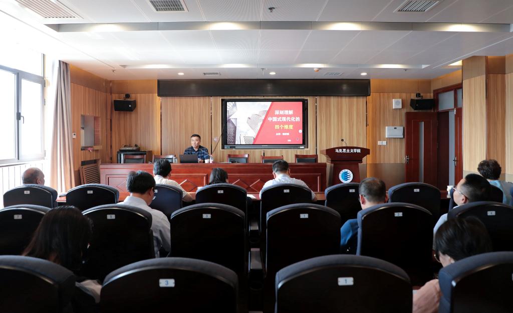 6月7日下午,校主题教育领导小组副组长、校党委副书记杨欲晓以《深刻理解中国式现代化的四个维度》为题,为机关党委所属党支部书记、副书记、委员和分管联系单位班子成员讲授主题教育专题党课。专题党课在马克思主义学院学术报告厅举行。机关党委书记王帏主持党课报告会。