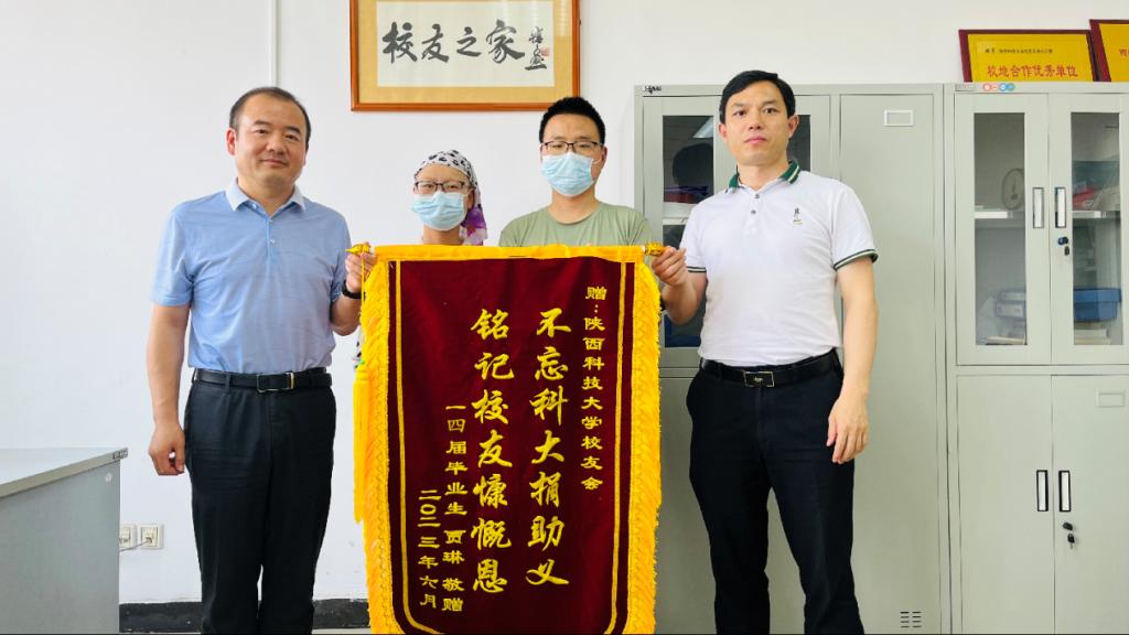 “不忘科大捐助义,铭记校友慷慨恩”。6月9日上午,校友贾琳及其家人专程回到母校,向母校赠送锦旗,并委托校友总会向广大校友转达感恩之情。校友总会、文理学院热情接待了贾琳一行。