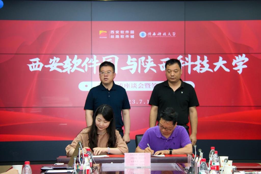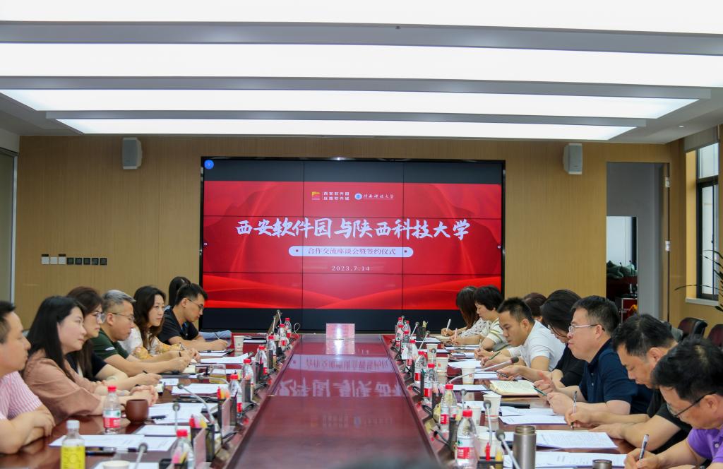 7月14日上午,校党委副书记郭强带领学工部负责人,电子信息与人工智能学院班子成员、专任教师代表、2024届毕业班辅导员等赴丝路软件新城调研交流,并与西安软件园西软云智公司,电装智能、知微传感、软通动力、点通软件、雷风电子、飞碟虚拟现实、辰知科技、四叶草信息、诺瓦星云等9家企业代表展开座谈交流。西安软件园发展中心副主任张露及相关企业代表参加座谈。