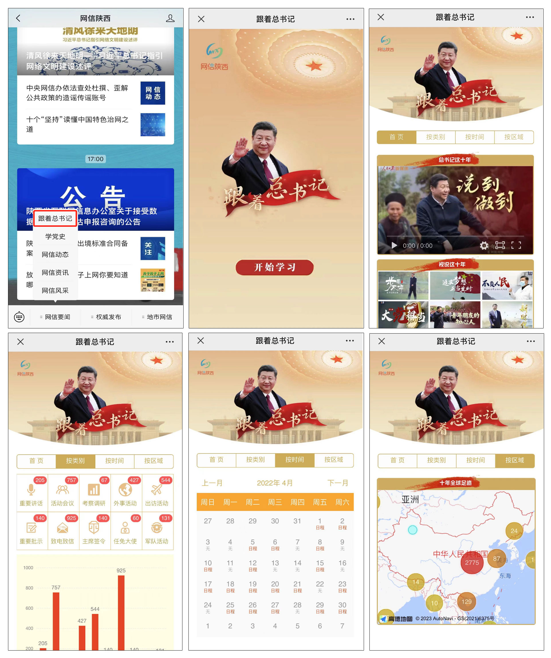 该应用由阿尔斯特学院奇点网络文化工作室设计制作,历时60天完成。将人民网、新华网、光明网等国家级重点媒体对习近平总书记工作的新闻报道进行整合,梳理出党的十八大到党的二十大这10年间习近平总书记的工作足迹,按照“类别”“时间”“空间”三个维度进行归类,直观呈现党的十八大以来,以习近平同志为核心的党中央团结带领全党全国人民推动高质量发展取得的巨大成就,生动反映习近平总书记的领袖风范和人民情怀,有效引导广大青年深刻领悟“两个确立”的决定性意义,增强“四个意识”、坚定“四个自信”、做到“两个维护”。