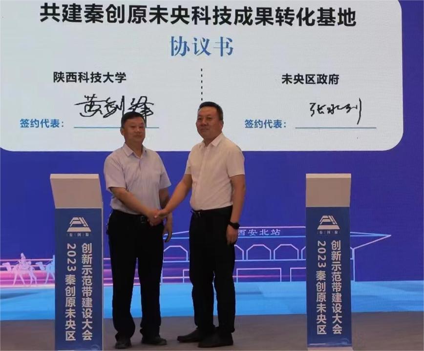 黄剑锋、未央区组织部部长张水利分别代表学校和未央区人民政府签订“共建秦创原未央科技成果转化基地”协议,该成果转化基地在产业合作、技术研发和成果转化、开放共享等方面联合联动,推动武德路片区创新发展。德赢官网遴选优质创新团队入驻,推动基础研究向应用研究转化,利用好平台资源,加速技术转移扩散和产业化进程,培育科技企业,构建区域技术转移生态。通过重大科技成果转化示范,梳理科技成果转化堵点,形成贯穿科技成果转化全链条的机制模式。做实校地合作,推动更多创业平台、创新机构集聚未央,进一步扩大技术交易额的增量。发挥师资和科研优势建设,帮助青年人才高质量创业就业,推动更多科技成果就地转移转化,形成科技为支撑的产业体系,共创未央科创新名片。