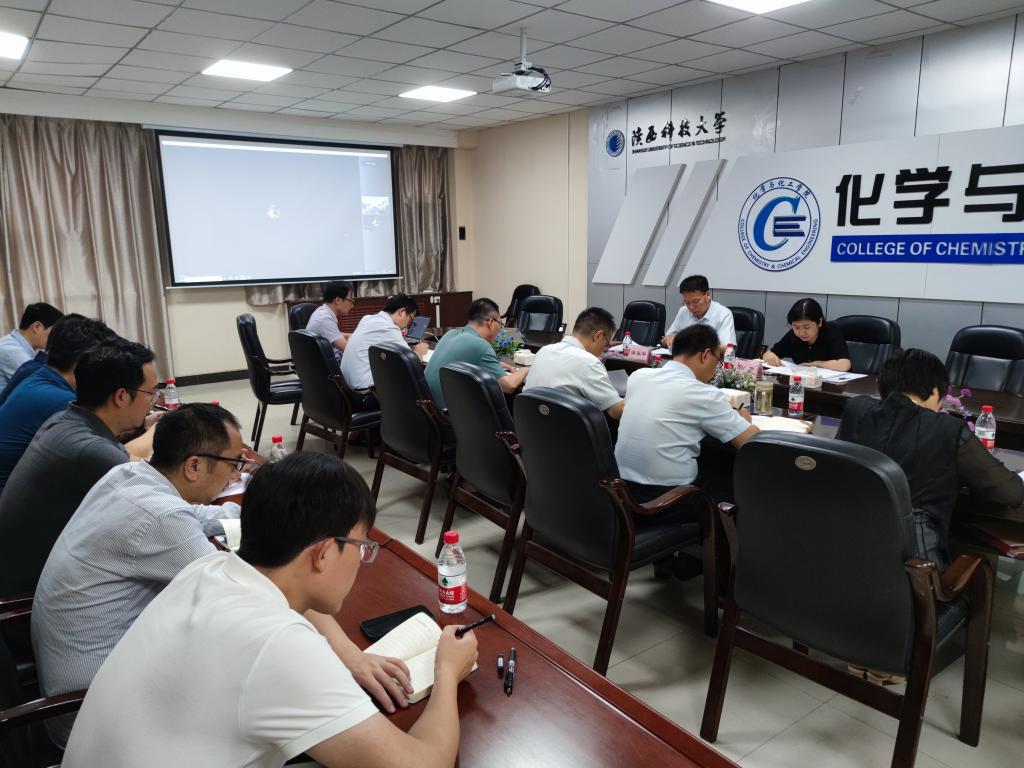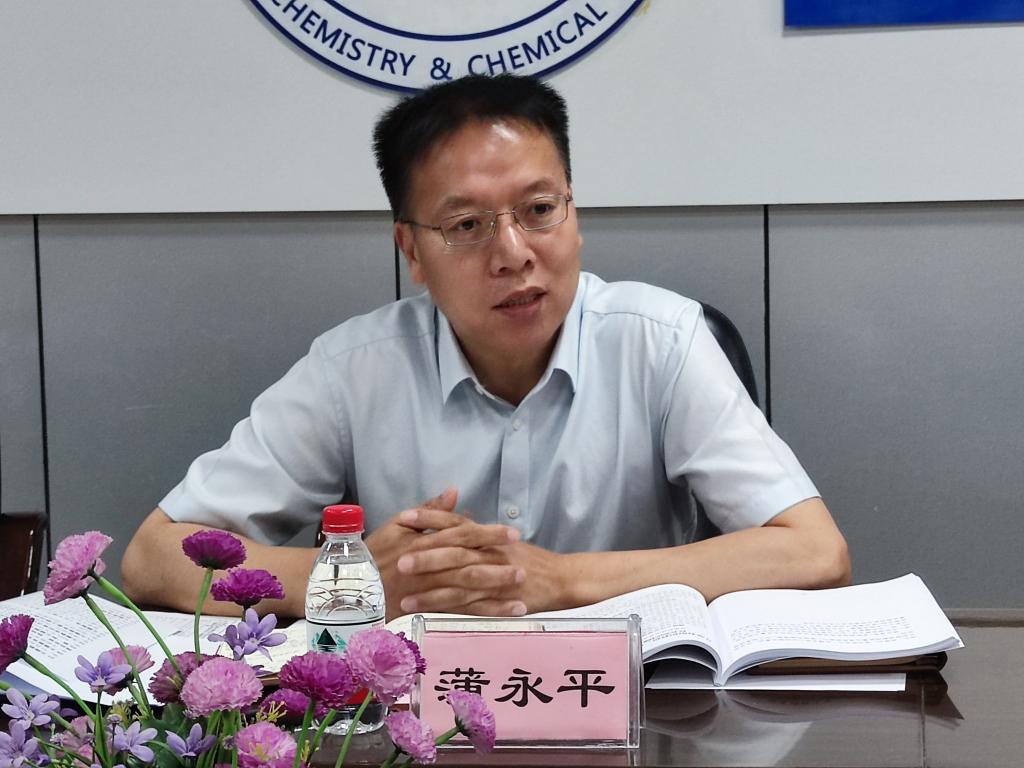 主题教育深入推进以来,化学与化工学院党委聚焦如何推进学院高质量发展,统筹策划“学科人才科研大调研”,向全院师生发出“责任使命,时代之问”。学院坚持调查研究走深走实走细有效果的总基调,围绕当前面临的主要问题,为高质量发展群策群力、集思广益。7月25日下午,学院党政班子在化工楼312会议室召开学习贯彻习近平新时代中国特色社会主义思想主题教育调研成果交流会。副校长蒲永平作指导讲话,校主题教育第三督导组组长马力到会指导。学院党委书记张岩主持会议。