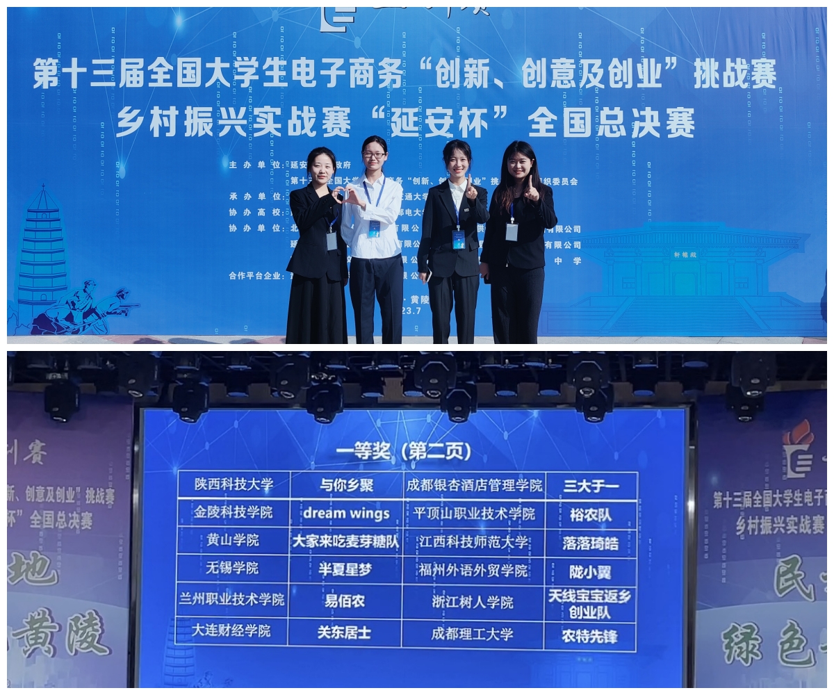 7月25日至7月27日,第十三届全国大学生电子商务“创新、创意及创业”挑战赛(简称“三创赛”)乡村振兴实战赛“延安杯”全国总决赛在陕西省延安市黄陵县举行。德赢官网经管学院杨琦、张思芮、张维佳、曹孟菲、胡存颖五位同学组成的“与你乡聚”团队从全国135支优秀队伍中脱颖而出,荣获全国“三创赛”乡村振兴赛道一等奖。