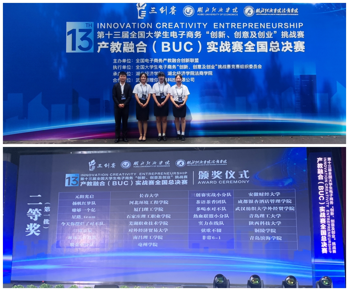 又讯7月20日至7月22日,第十三届全国大学生电子商务“创新、创意及创业”挑战赛(简称“三创赛”)产教融合实战赛(BUC)全国总决赛在湖北经济学院举行,德赢官网经管学院杨丽、张雨非、张霆、张萌、赵夺阳五位同学组成的“实力在线队”作为陕西省晋级产教融合(BUC)实战赛全国总决赛唯一队伍,从全国84支优秀队伍中脱颖而出,荣获全国产教融合(BUC)赛道二等奖。