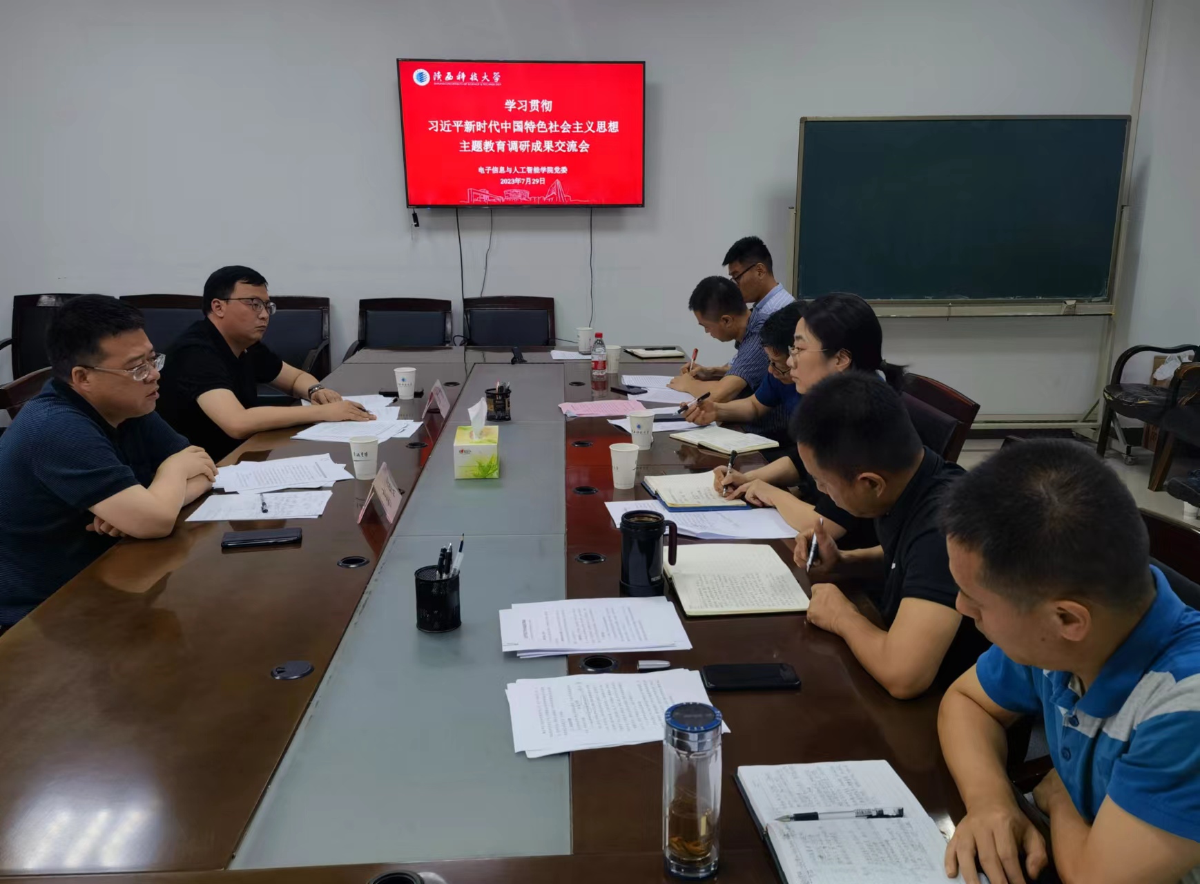为持续深入推动学习贯彻习近平新时代中国特色社会主义思想主题教育走深走实,推进调查研究工作高质量开展,按照校党委统一部署和要求,7月29日上午,电子信息与人工智能学院在实验楼2A204会议室召开党政领导班子学习贯彻习近平新时代中国特色社会主义思想主题教育调研成果交流会。校党委副书记郭强作指导讲话,校主题教育第五督导组李萌到会指导。学院党政班子成员、党政办公室主任、党委组织员、教职工党支部书记参加会议。学院党委书记吕文华主持会议。
