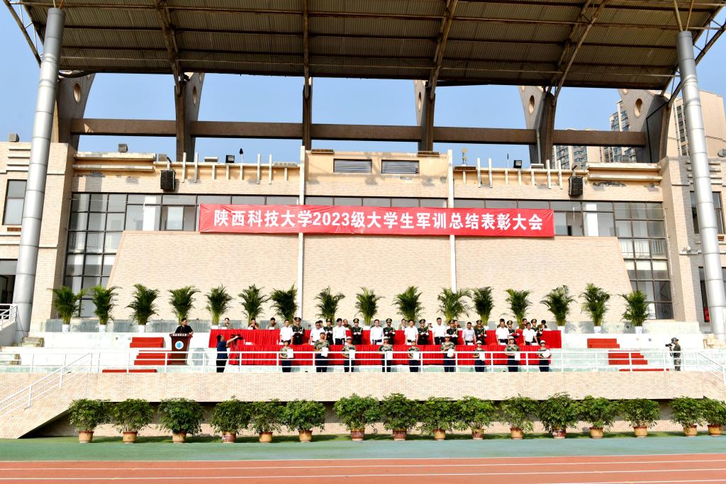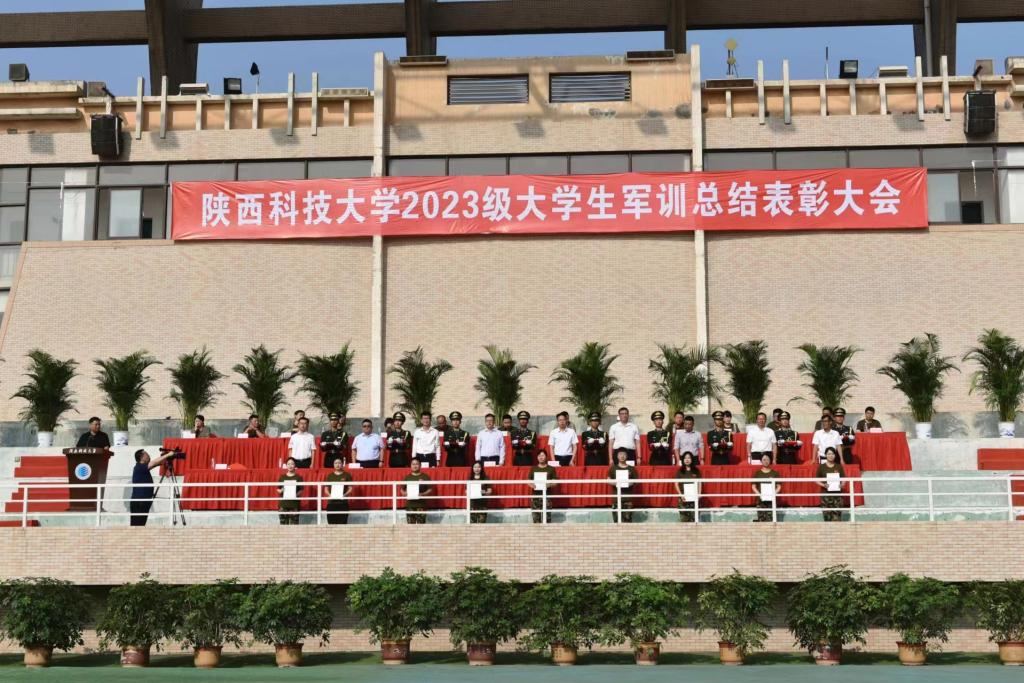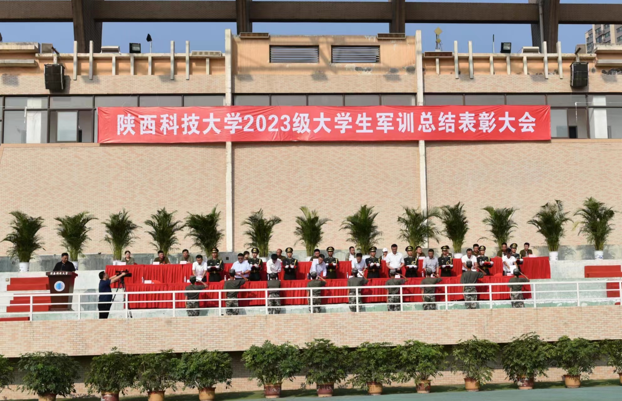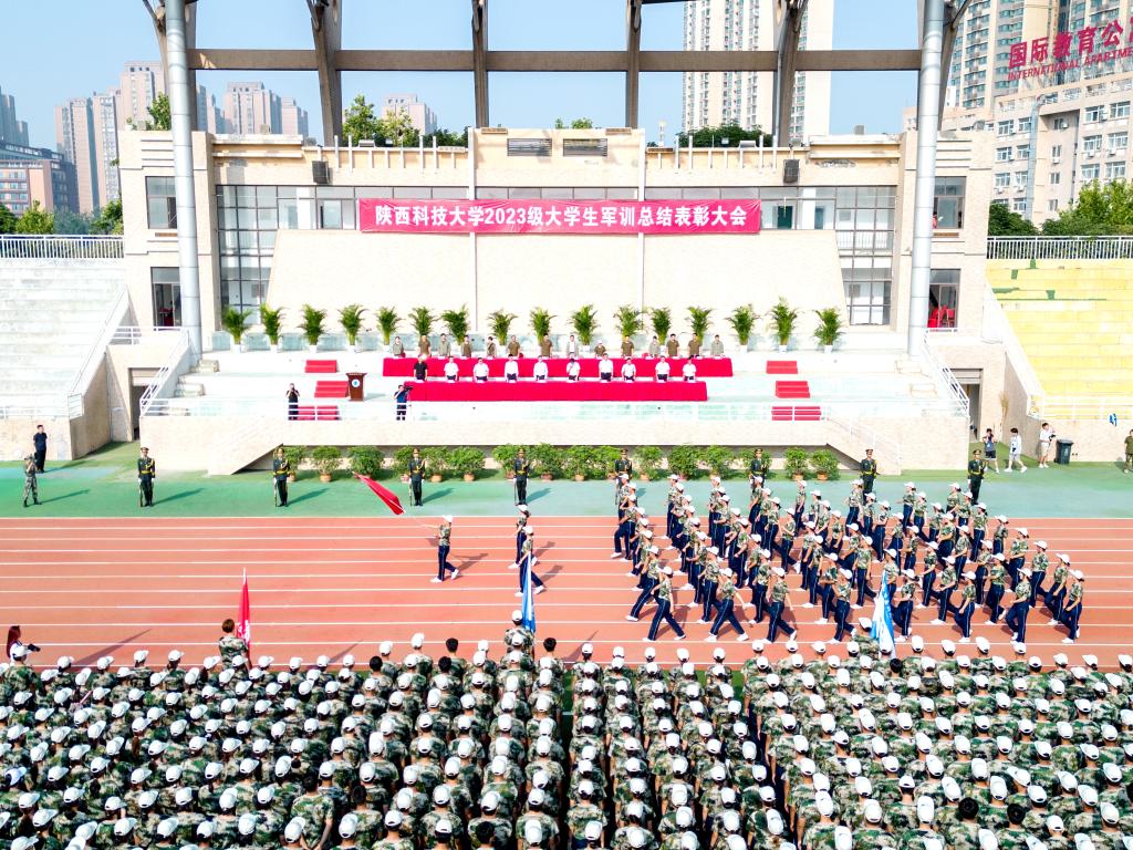 9月8日,德赢官网2023级大学生军事训练总结表彰大会在标准田径场举行。4000余名陕科大2023级学子奕奕神采、豪情满怀,以昂扬的斗志、饱满的精神展示了10天的军训成果。校党委副书记郭强、副校长蒲永平及军训团各部门负责人、各营教导员出席大会。大会由武装部部长张凯凯主持。