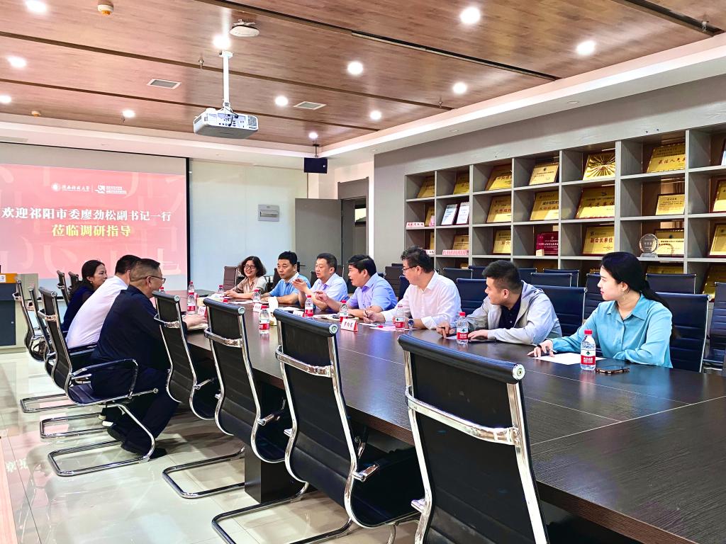 黄剑锋对廖劲松一行来访表示热烈欢迎,并介绍了德赢官网Vwin的历史沿革、特色优势、社会服务以及各学院在人才培养方面取得的成效,希望双方在科研成果转化、技术服务以及人才就业等多方面展开多方合作。廖劲松从“十个好”介绍了祁阳市的地理优势、历史人文以及特色服务产业,并希望借助德赢官网科研平台及项目成果为当地产业提供技术与人才支持。