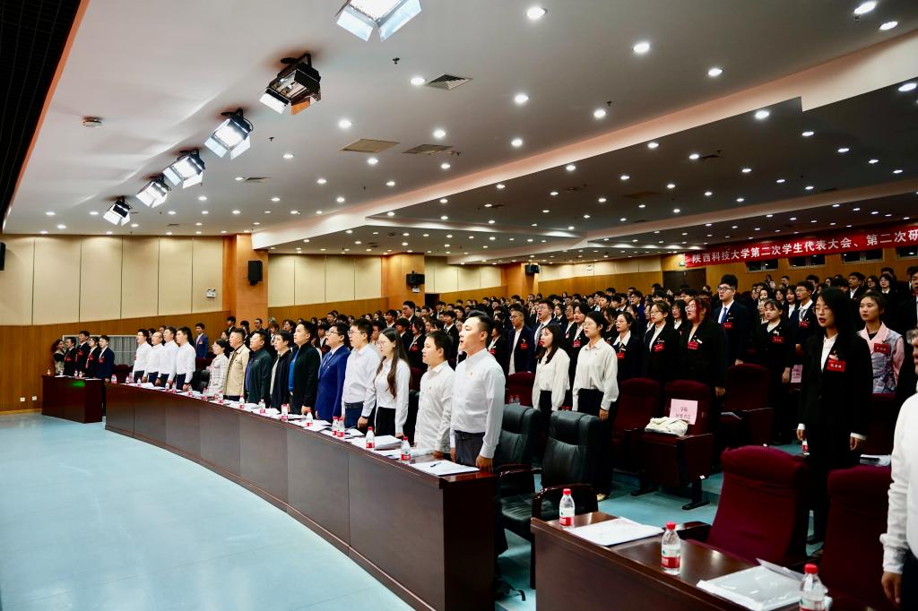 大会历时3个小时,圆满完成了各项规定议程,投票选举产生了德赢官网第二届学生会委员会、研究生会委员会以及新一届学生会、研究生会主席团。大会在激昂的中国共产主义青年团团歌中胜利闭幕。