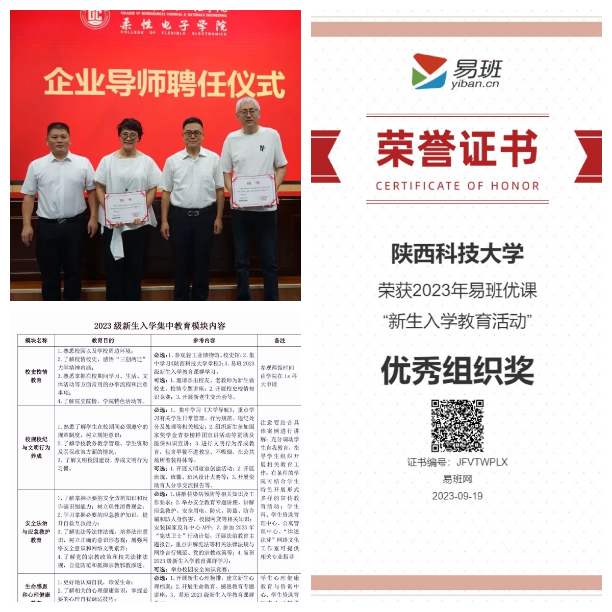 强化系统思维,构建入学教育大格局。学校将入学教育看作一个有机整体,系统谋划“做什么”“谁来做”“怎么做”。育人主体更加多元。校内多部门联动,学工、网络思政、团委、教务等多部门与各二级学院共同研制《本科新生入学教育方案》并推动落实;轻工科学与工程学院(柔性电子学院)举办“轻工文化月”新生系列活动,邀请学术带头人、优秀校友代表共同为新生上好“入学第一课”;各学院利用迎新广泛开展新生家长见面会,家校合力助推新生尽快适应大学生活。育人内容更加丰富。将入学教育划分为集中教育和系列专题教育两个阶段,覆盖新生入学后的整个学期;集中教育以“做‘三创两迁’精神新传人”为主题,贯穿迎接新生、开学典礼、军事训练各个环节;开展系列专题教育,涵盖校史校情、校纪校规、感恩与生命教育等7个模块、23个必选动作、14个自选动作,既有思政课、爱国课,也有安全课、心理课。育人形式更加新颖。采取线上教育与线下教育相结合、课堂讲授与实践教学相结合、教师指导与朋辈辅导相结合的方式进行,充分发挥学校网络思想政治工作优势,前置入学教育,新生未入校先进班,累计建立入学教育课群12个,学校荣获2023年度全国易班优课“新生入学教育活动”优秀组织奖。