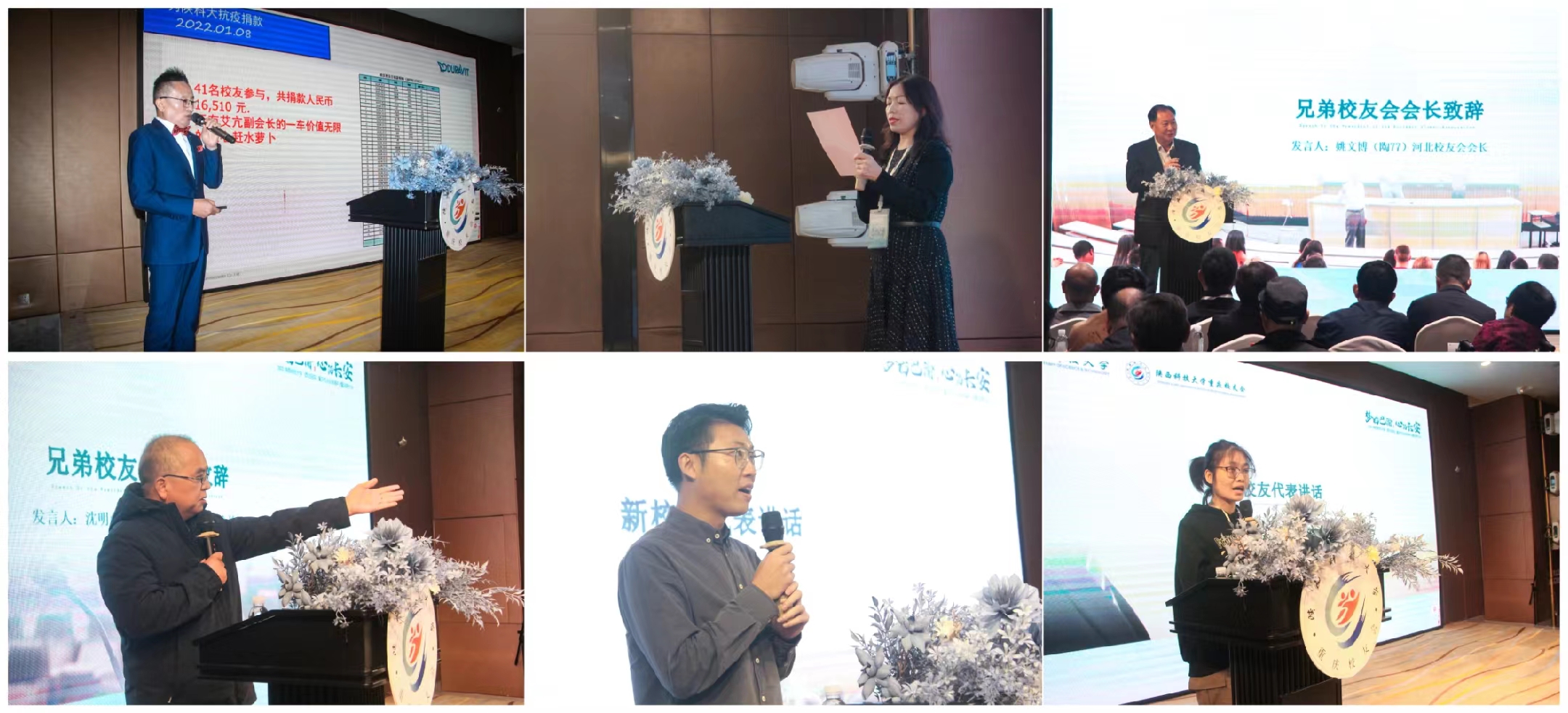 会上,秘书长王广轩(陶89)、副会长陈春荣(机84)分别做重庆校友会工作报告和财务报告。河北校友会会长姚文博(陶77)、天津校友会拟任会长沈明山(钟表84)代表兄弟校友会致辞。新校友代表骆思翰(材料15级,现重庆大学博士在读)、栾欠欠(材料18级,现重庆大学研二)发言。
