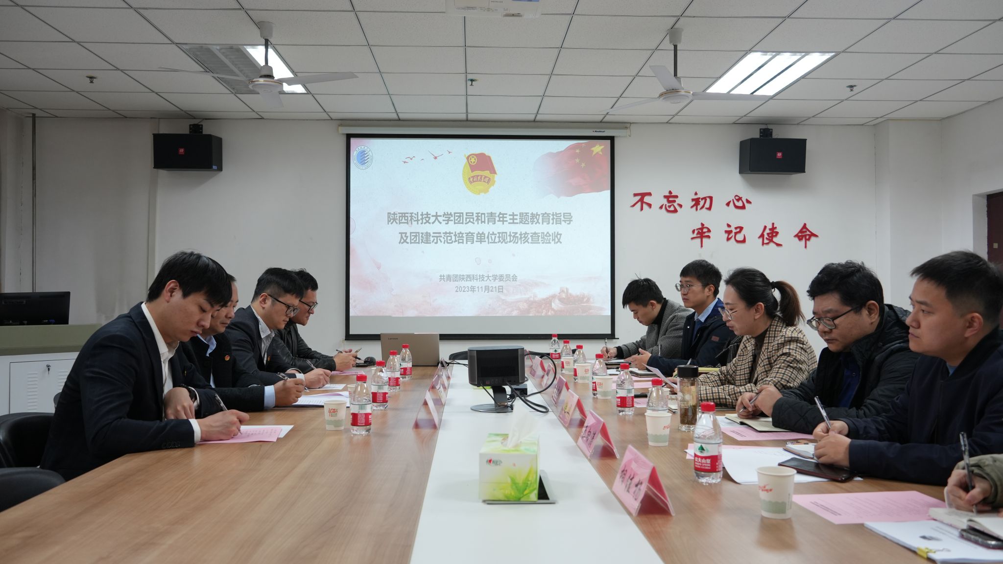 王雪婧代表校团委对验收工作组一行莅临德赢官网指导工作表示热烈欢迎和感谢,并就德赢官网团建示范创建工作从基本情况、培育内容和经验成效三个方面进行了汇报。刘俊富代表验收工作组就验收工作的主要内容、主要步骤和验收要求进行了说明。他指出,陕西高校团建示范创建工作是共青团陕西省委、省委教育工委全面深化高校共青团改革,切实加强全省高校共青团基层建设,发挥共青团在“大思政”工作格局中的积极作用的重要工作部署。