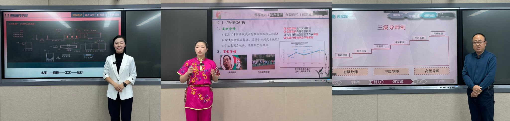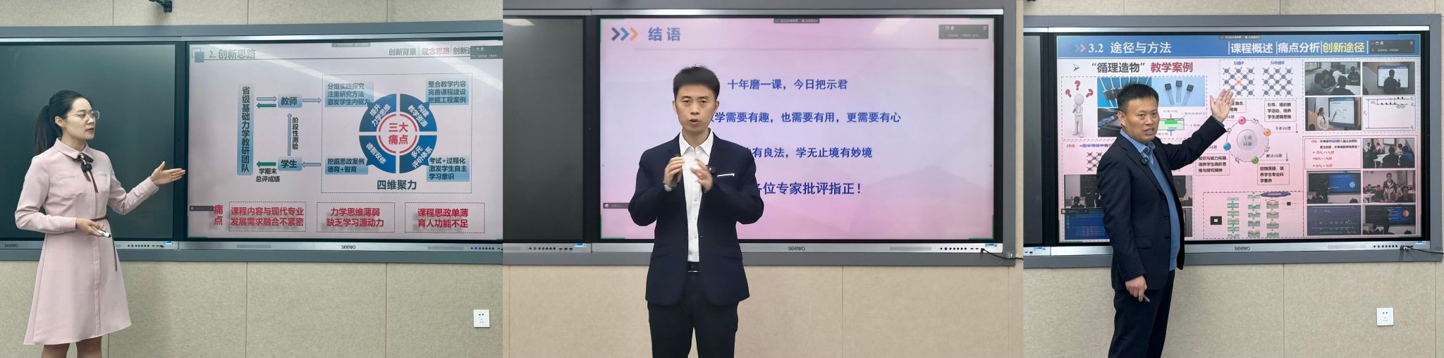 二等奖获得者刘苗老师(左)、二等奖获得者刘毅老师(中)、二等奖获得者王进军老师(右)