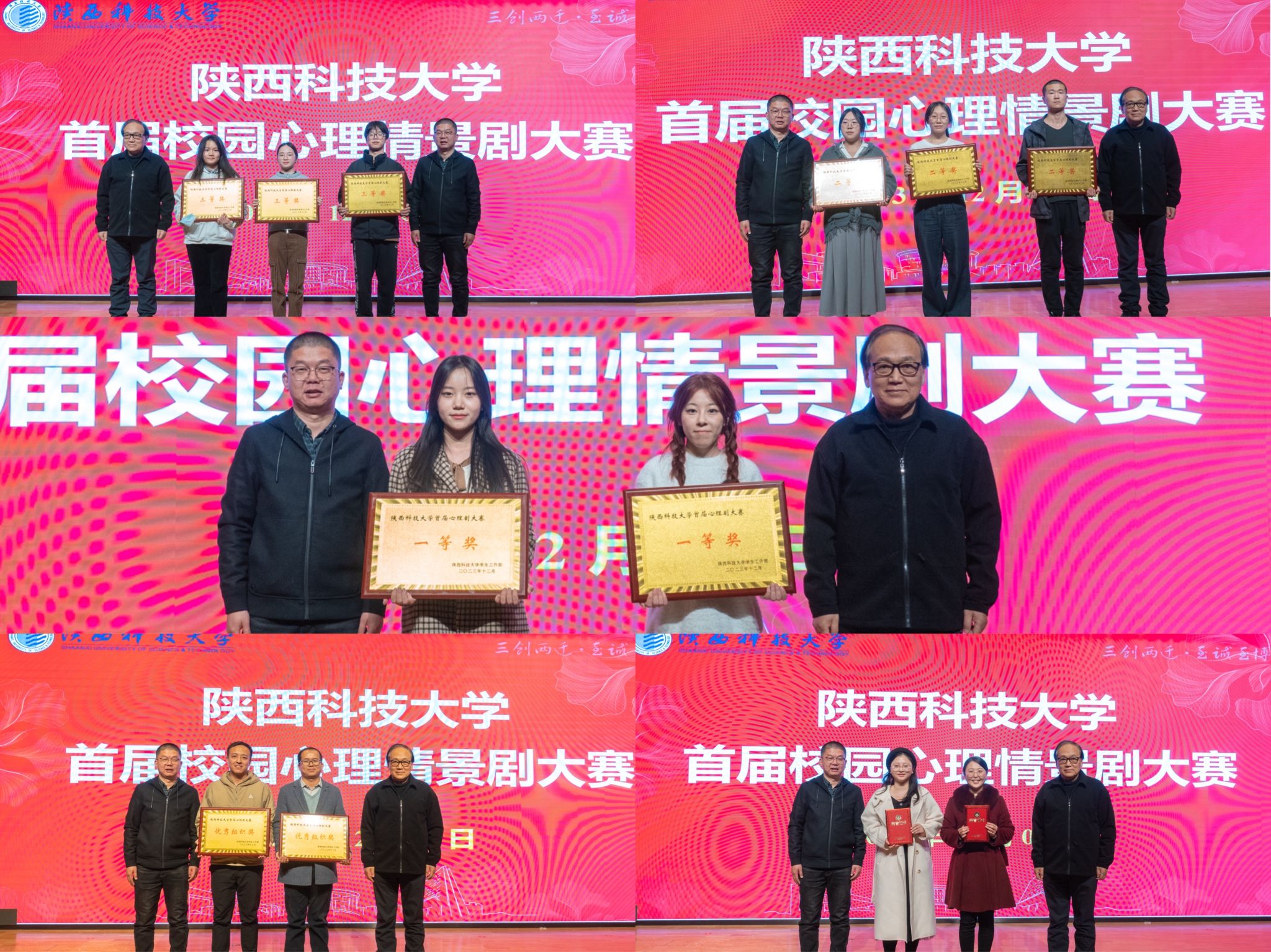 大赛历经初赛、复赛、决赛阶段,各学院高度重视,精心组织,积极引导学生在活动中掌握心理健康知识和工作技能,形成良好的心理品质和工作理念。比赛现场,各位参演者全情投入尽情展示,出彩的表演、有趣的台词、丰富的剧情,无不吸引着全场观众的目光,呈现了一场精彩绝伦的比赛。经过激烈角逐,设计与艺术学院(丝路文化与传播学院)《韭菜鸡蛋馅的饺子》、“Suster同心”朋辈帮扶团《扬帆起航》获得一等奖,阿尔斯特学院《一个像夏天,一个像秋天》、电智学院《内卷的名义》、机电工程学院(智能制造与机器人工程学院)《陪你淋雨》获得二等奖,环境科学与工程学院(碳中和科学与技术学院)《勇敢破晓》、材料科学与工程学院(文物保护科学与技术学院)《摆脱敏感,做回自我》、电气与控制工程学院《寻》获得三等奖。电智学院、轻工科学与工程学院(柔性电子学院)获得优秀组织单位奖,吴艺璇、权海燕获得优秀指导教师奖。