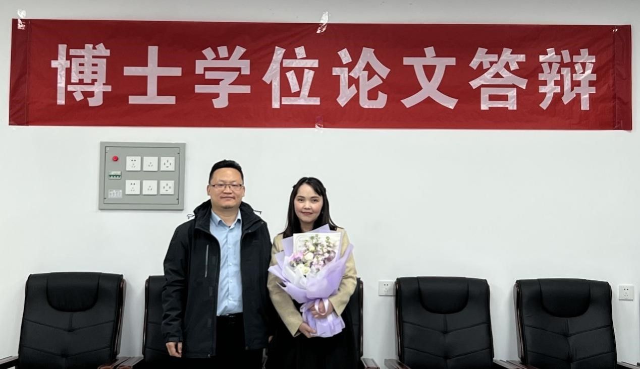 导师陈庆彩(左一)、留学生爱琳(右一)在博士学位论文答辩会上