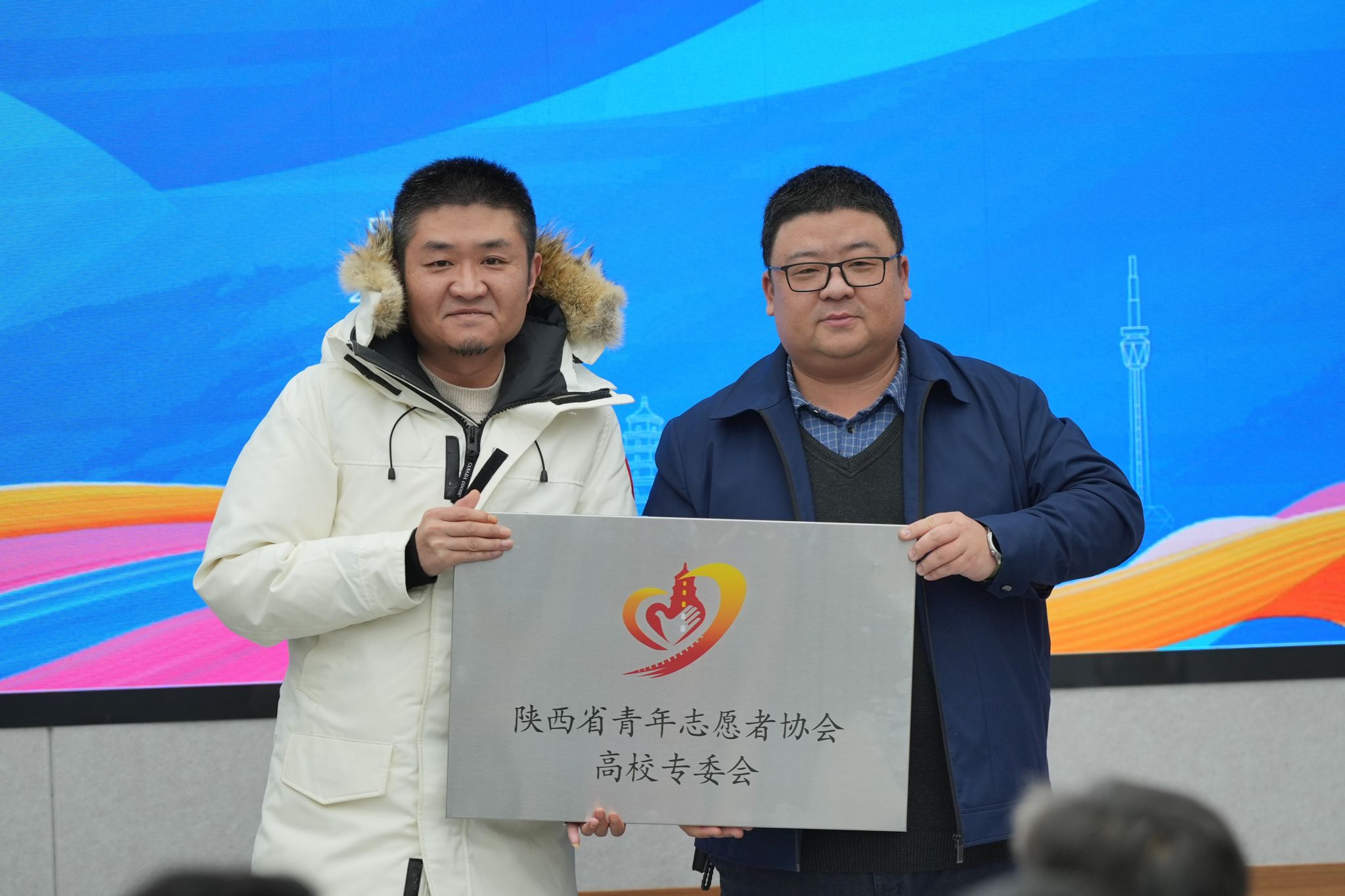 在上午的研讨会上,省青年志愿者协会会长苗阜为德赢官网团委书记李鹏授牌成立“陕西省青年志愿者协会高校专委会”。