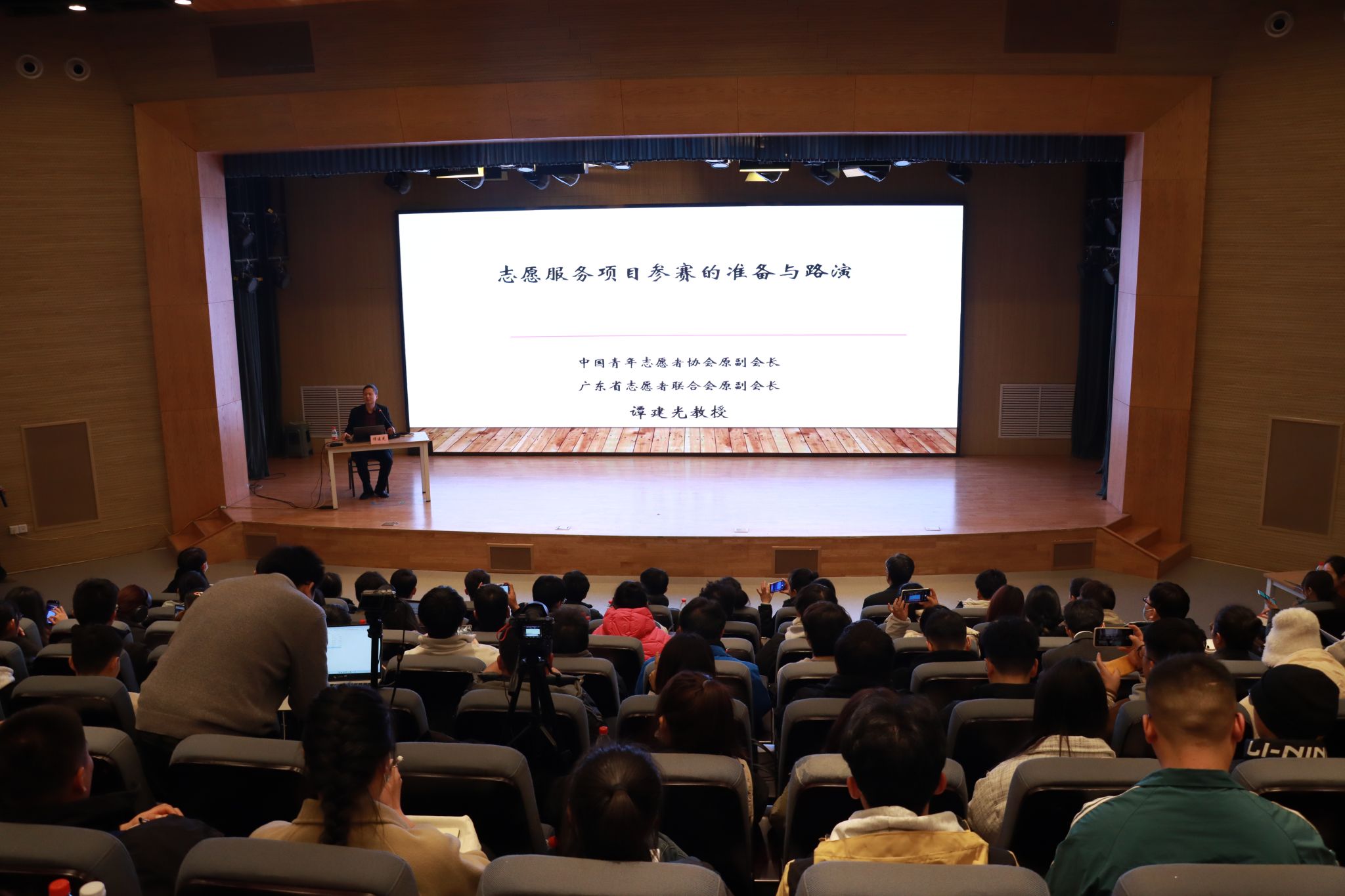 在下午的骨干培训会上,中国青年志愿者协会原副会长、广东省志愿者联合会原副会长谭建光教授针对如何做好项目优化和赛前准备向各志愿服务项目负责人作“志愿服务项目参赛的标准与路演”为主题的培训。