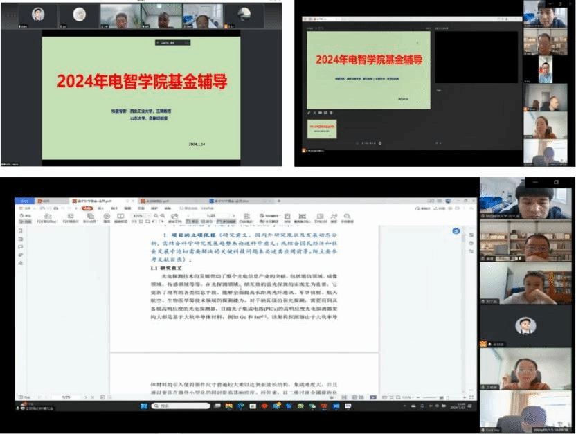 为了加强学院教师的科研能力,提高国家自然科学基金项目的申报成功率,电子信息与人工智能学院在寒假期间特别邀请了在科研领域具有丰富经验和深厚造诣的专家,主要包括西北工业大学王琦教授、山东大学贲晛烨教授、云南大学胡万彪教授、西安交通大学靳立教授,根据学科方向与申报口径,分组为学院教师进行国家自然科学基金辅导。