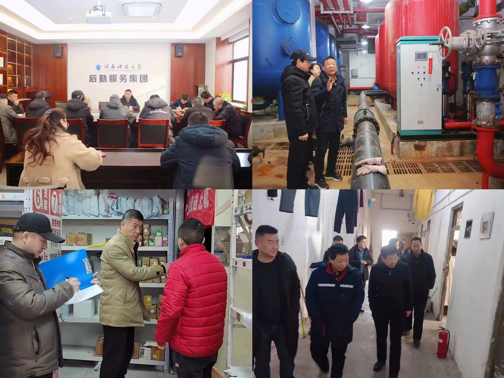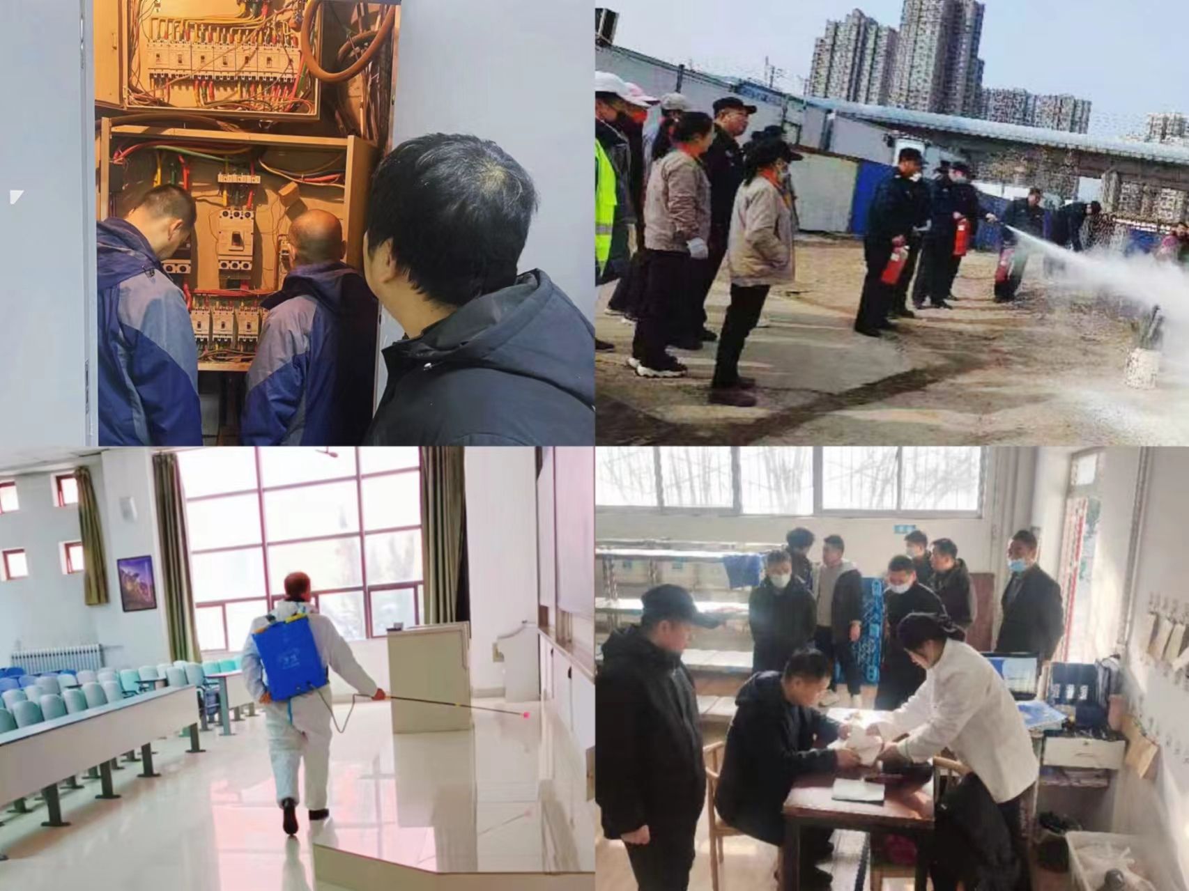在主管校领导的指导下,集团班子亲临一线,积极落实工作部署,开展自查自纠,坚持值班值守和巡查巡逻,及时上报和处理突发情况,确保安全稳定工作落到实处。定期对全校水电暖运行情况、线路安全、配电装置运转状况进行安全检查,及时消除安全隐患,确保设备正常运转;在家属区采用多种方式宣传假期安全知识和消防常识,加强巡查和整改力度,集中清理楼内杂物,组织物业全体员工进行应急事件处理、电梯安全、消防安全学习和演练;积极做好假期疫苗接种和开学传染病防控准备工作,针对冬春季呼吸道传染病和出血热预防进行全校范围消毒;积极落实省教育厅文件要求,从1月底开始开展为期6个月的校园食品安全排查整治专项行动,采取有力有效措施,切实保障在校师生饮食安全。
