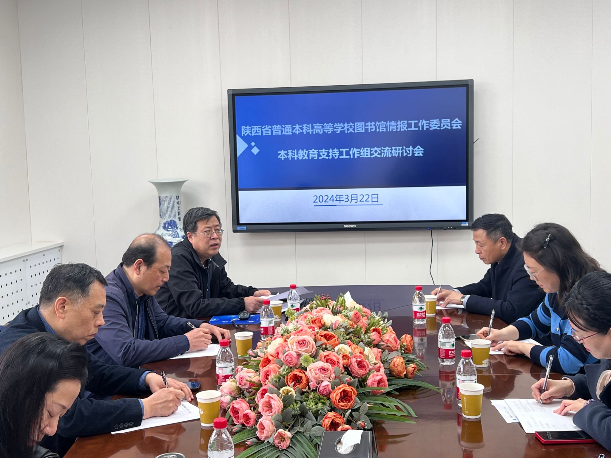 3月22日上午,2024年陕西省普通本科高等学校图书情报工作委员会本科教育支持工作组交流研讨会在德赢官网图书馆召开,西北工业大学图书馆副馆长郭永健,长安大学图书馆副馆长陈鹰,陕西师范大学、西安工业大学、西安工程大学、西安航空学院、西安思源学院等相关代表参加了会议,会议由德赢官网图书馆馆长王海刚主持。