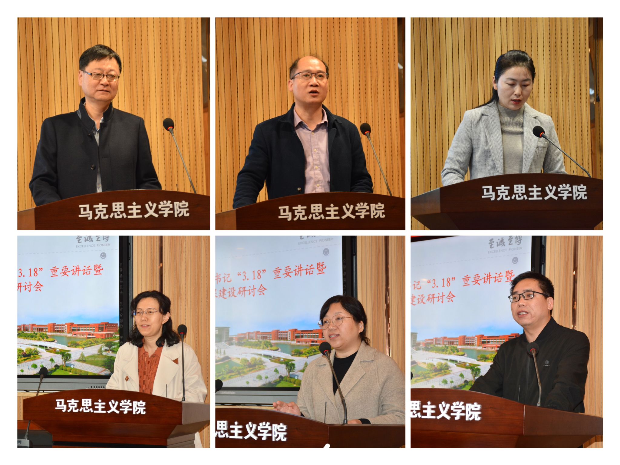 为贯彻落实习近平总书记关于思政课建设的重要论述,3月26日上午,马克思主义学院在学院1014会议室召开学习贯彻习近平总书记“3·18”重要讲话暨学校思政课建设研讨会。教师代表分别围绕“思政课建设”和“心得体会”分享了自己的学习感悟。学院领导班子成员、全体教职工参加会议。