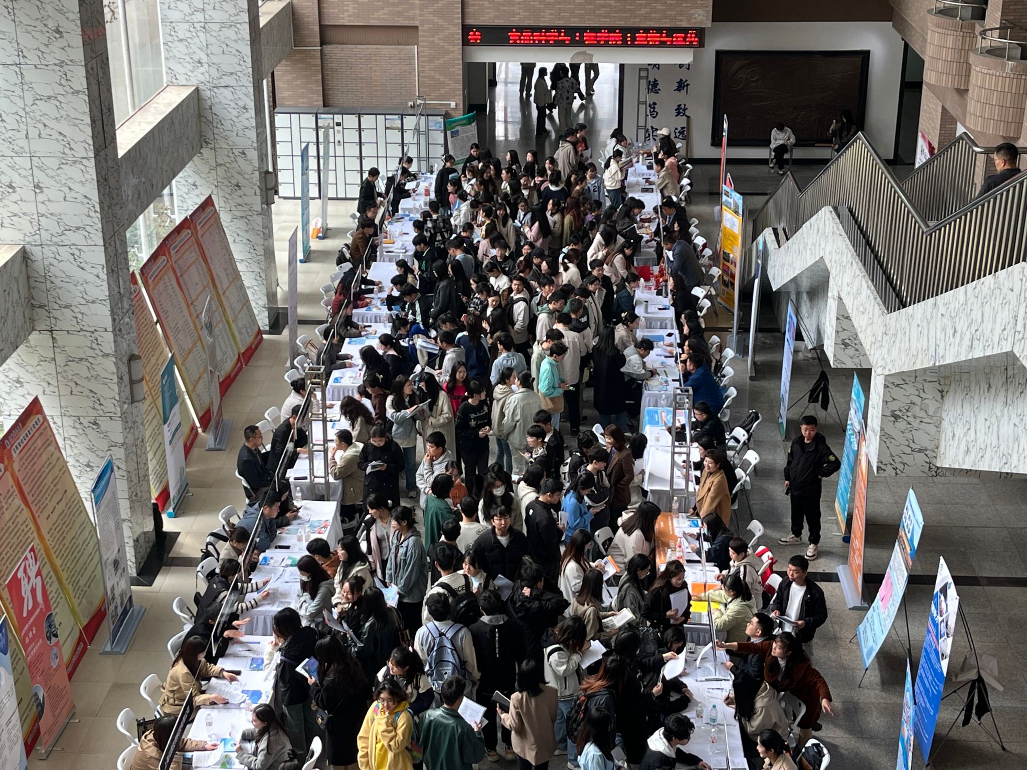 招聘会现场人头攒动,气氛热烈。前来应聘的学生与校友企业积极交流,主动了解单位情况。各校友企业代表耐心细致地为同学们讲解企业基本情况、岗位需求及薪资待遇等问题,并与毕业生就未来职业规划与行业前景开展积极沟通。