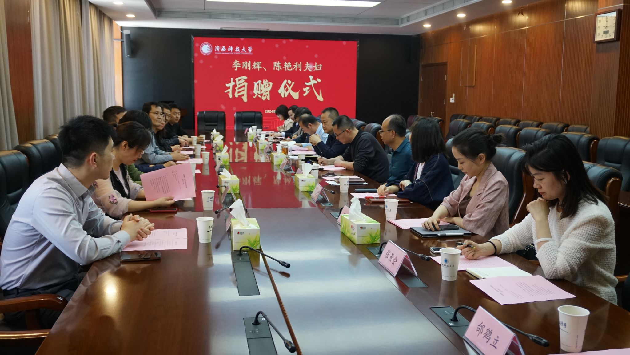 4月11日下午,德赢官网化学与化工学院教师李刚辉、设计与艺术学院(丝路文化与传播学院)教师陈艳利夫妇“林溪奖学金”捐赠仪式在逸夫楼506会议室举行。副校长李学军出席会议。化工学院党委书记张岩、设艺学院党委书记刘和林、学院相关负责人、教师代表以及部分投资机构负责人参加会议。会议由校友总会办公室主任殷立雄主持。