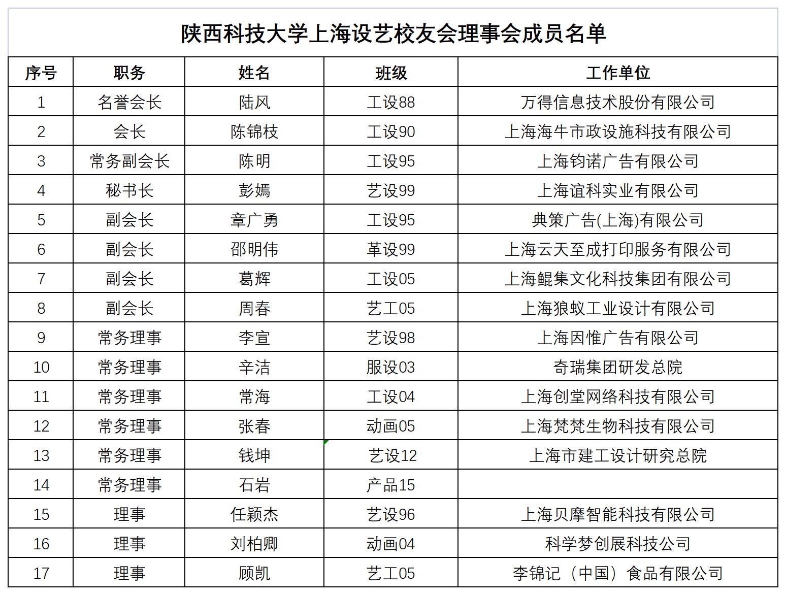 附:德赢官网Vwin上海设艺校友会理事会成员名单