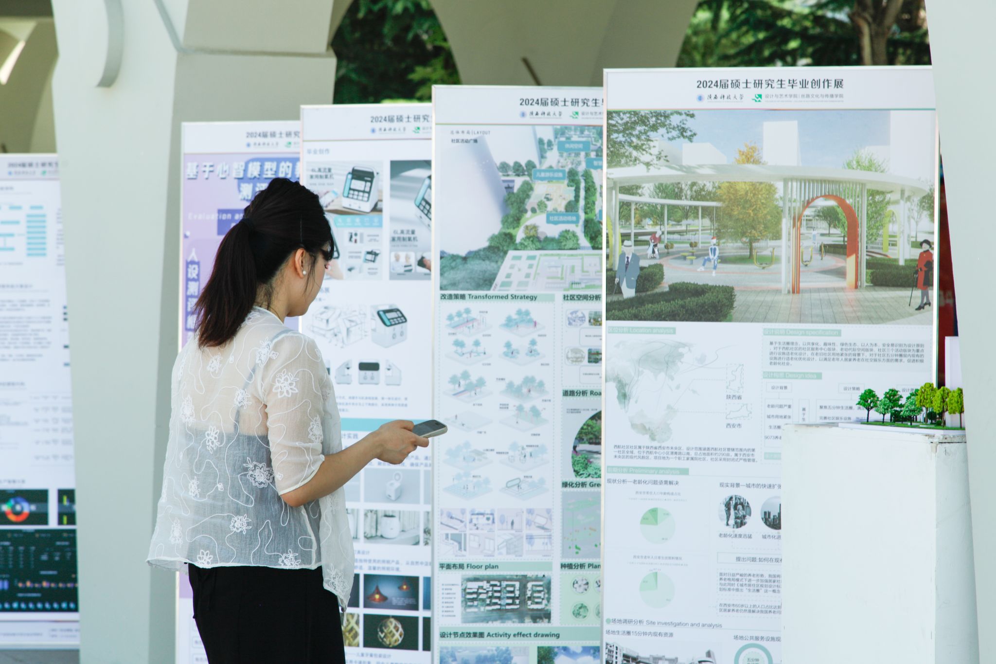 本次展览以“链接-生长”为主题,汇聚了视觉传达、工业设计、环境艺术、陶瓷美术、影视传媒等多个学科方向一百余件作品,展览设置了迎新大道文化长廊、人文楼一楼丝路文化展厅两个展区,展示了24届研究生基于设计研究与实践创新的探索与思考,呈现了他们对人文内涵的思考和技术创新的表达,见证了他们三年设计艺术学习的成长。